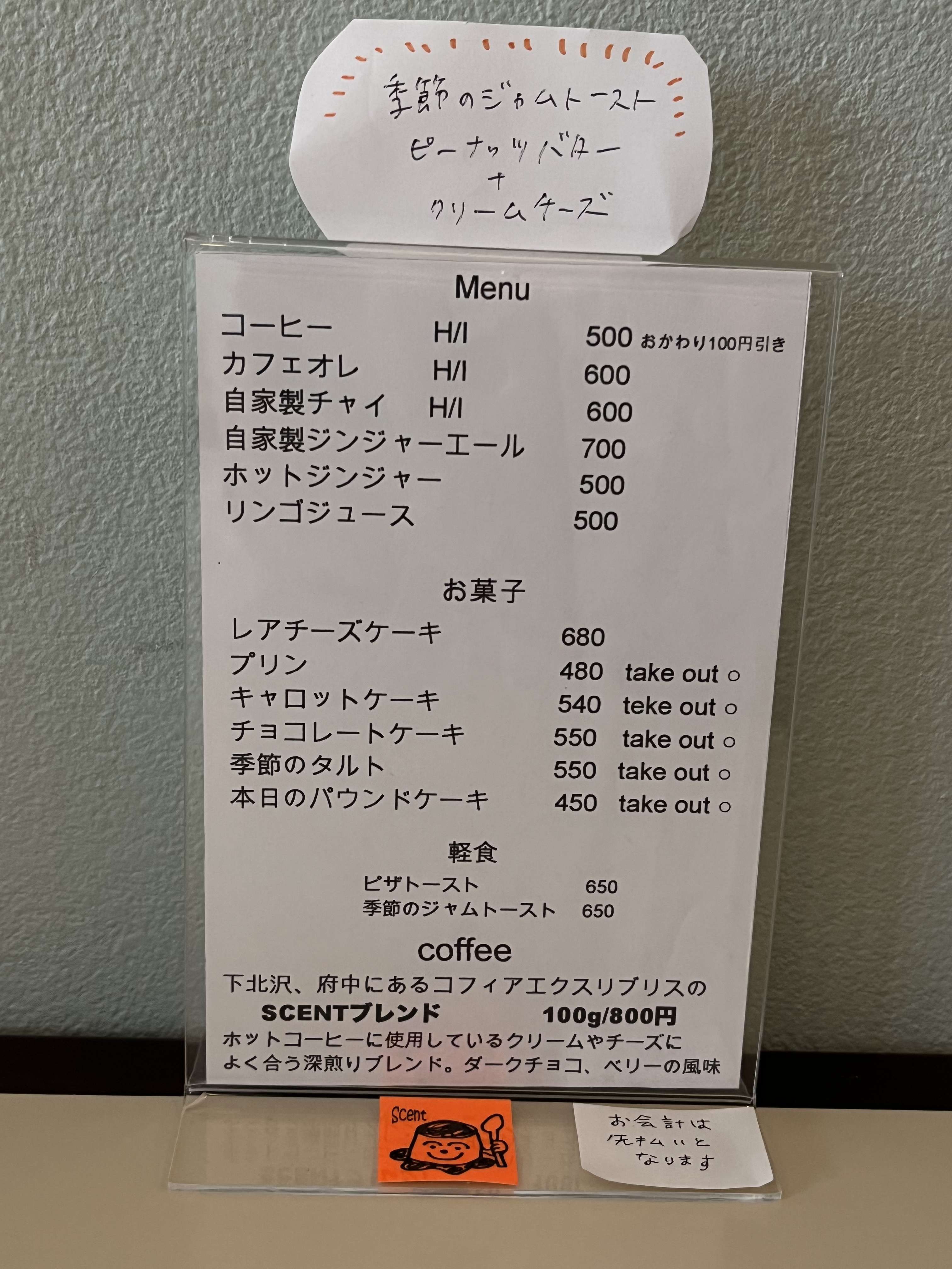 店内のメニュー表