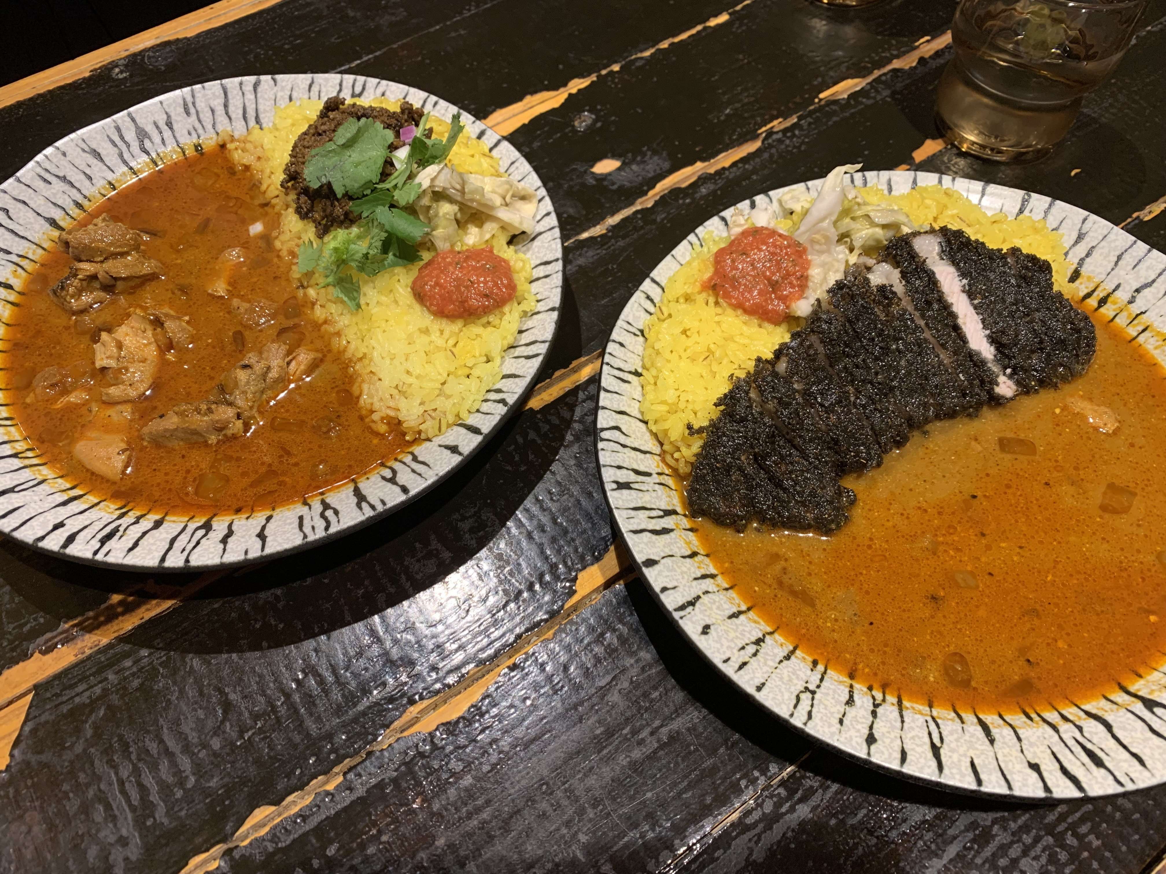 肉肉しいキーマが乗っているチキンとキーマのカレーもオススメです!
