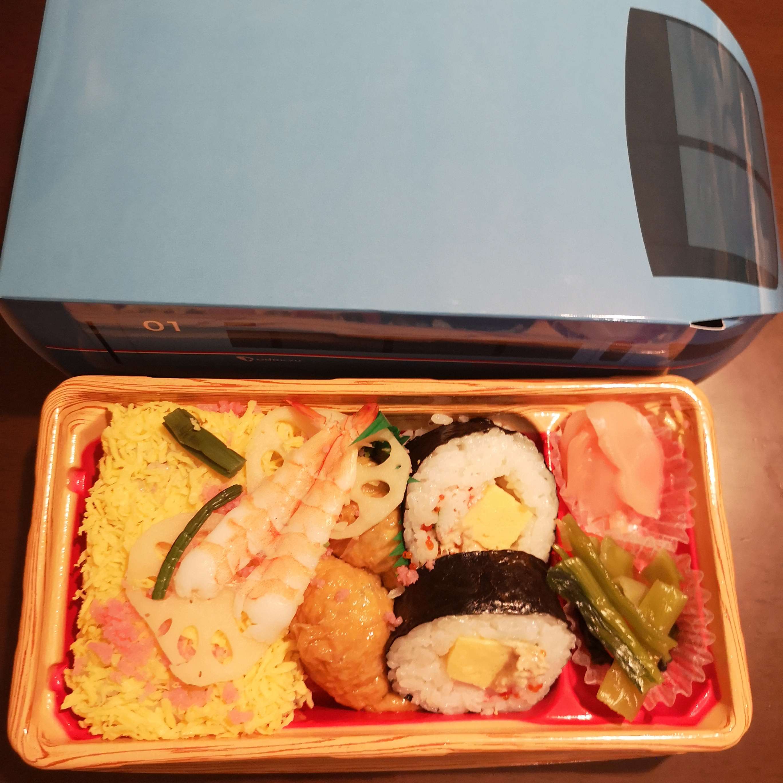 5月29日に相模大野の小田急OXでたまたま限定のロマンスカーのお弁当を発見し購入しました。
