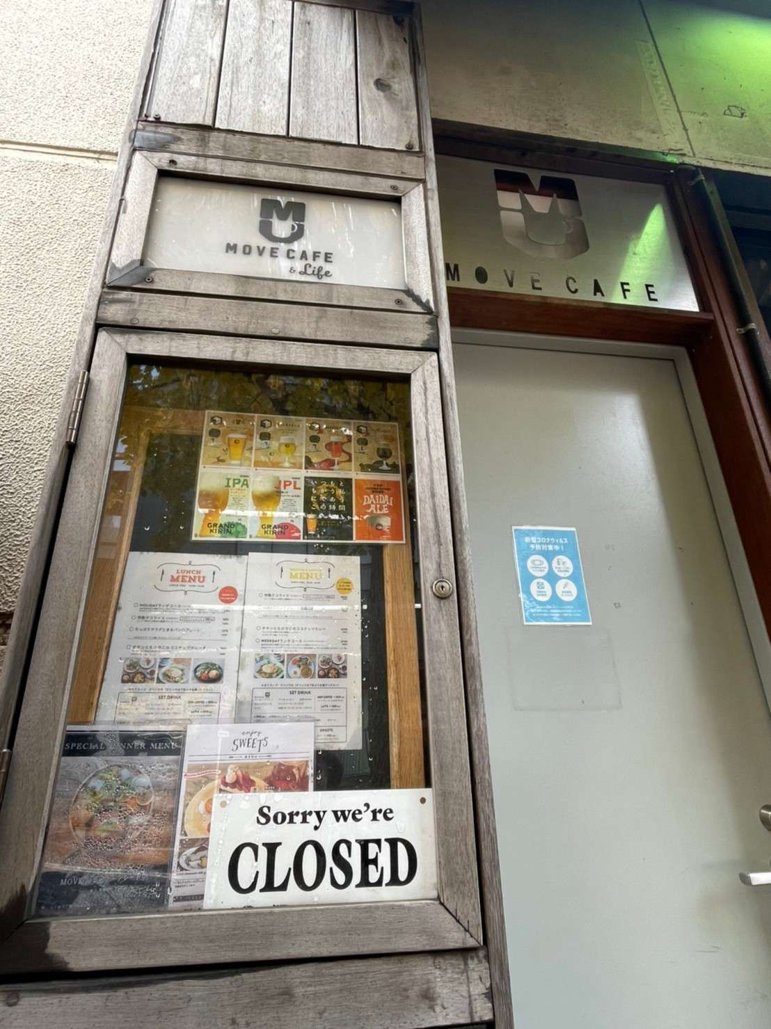 move cafeの入り口は、こちらの扉から階段で上がっていくとあります。