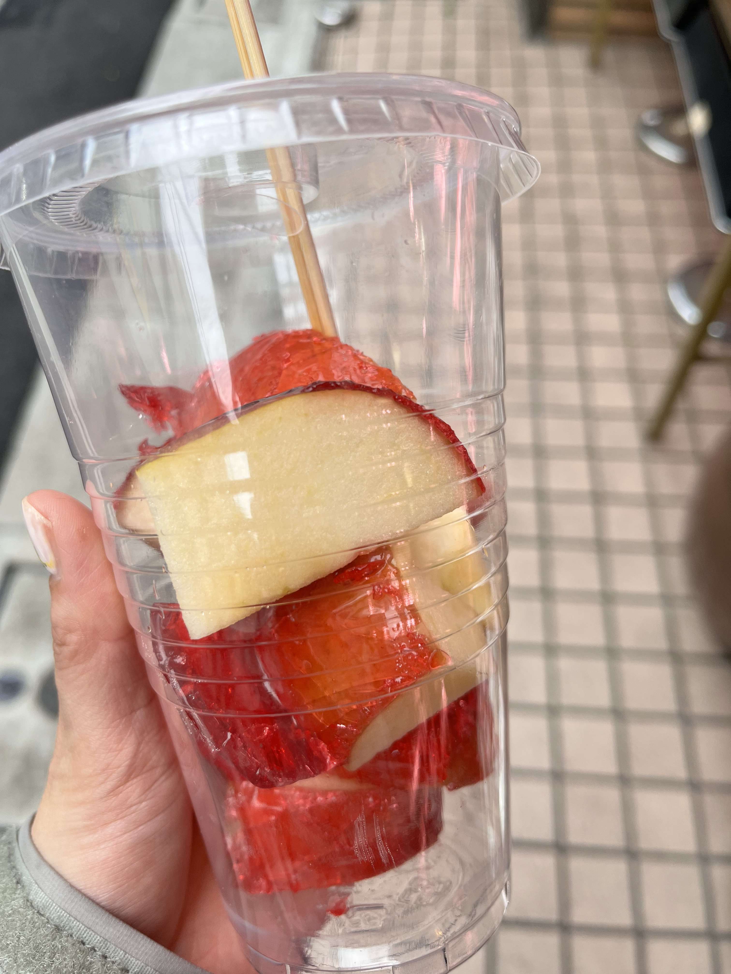 結果、選んで大正解。りんごの瑞々しさと甘さ、それを優しくコーティングするカリカリとした食感の飴がとても美味しかったです。