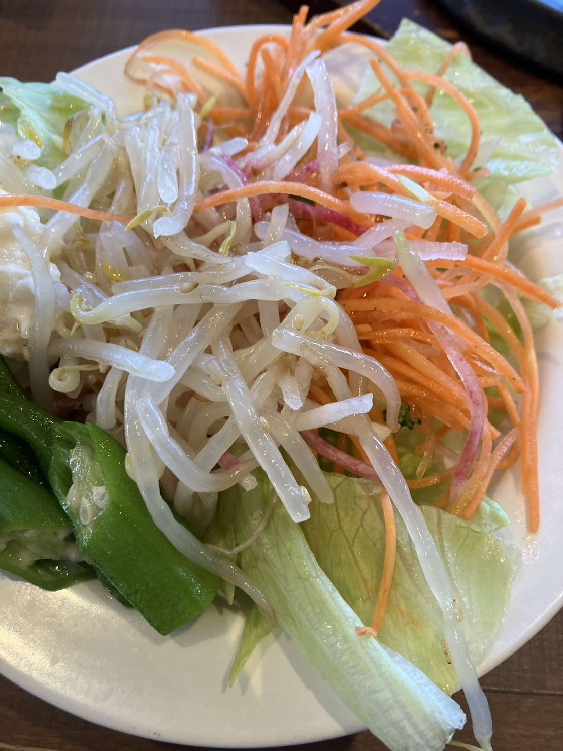 サラダの種類も豊富で、レタスなどの葉物はもちろん、ポテトサラダやオクラなどバラエティー豊富。