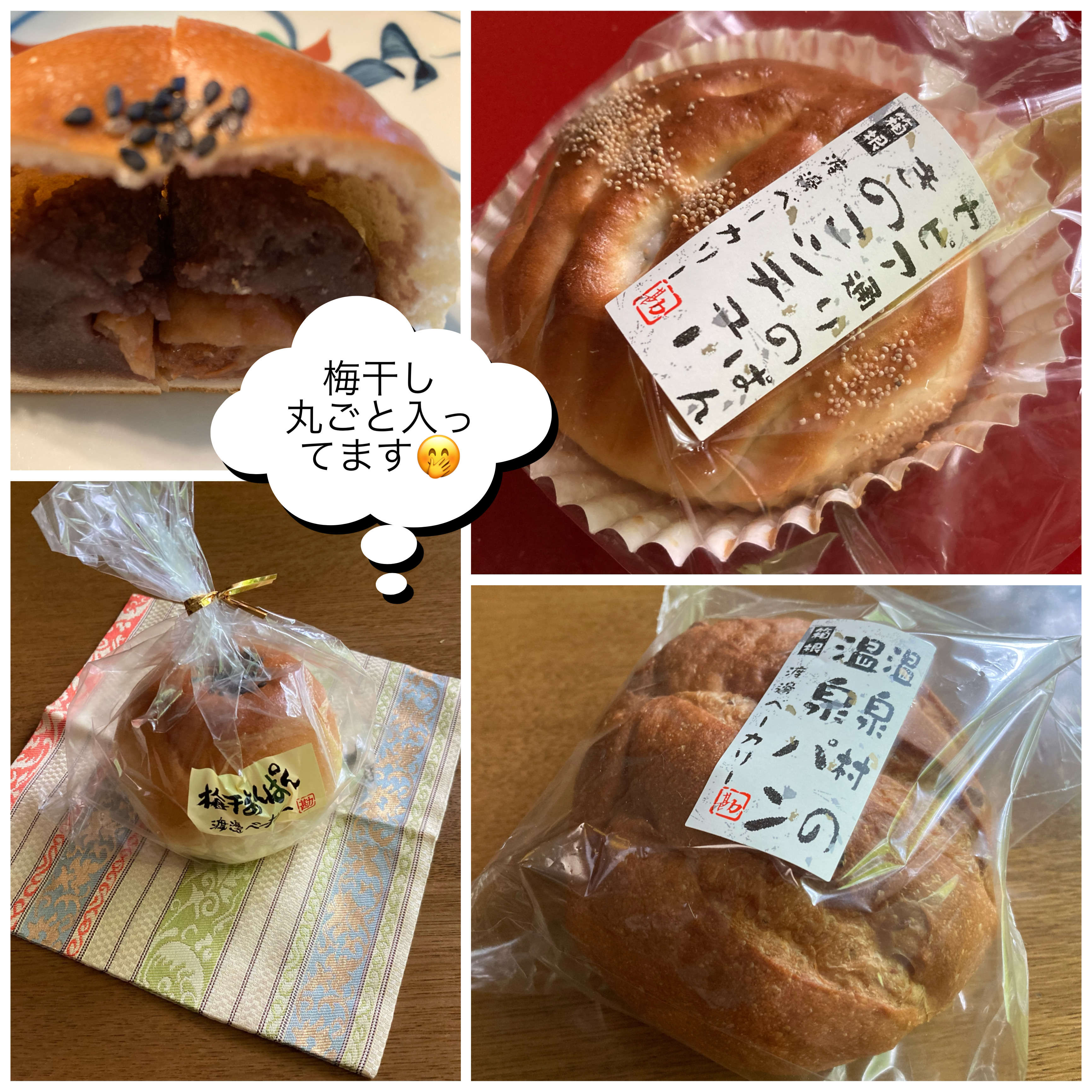 名物梅干しあんぱん・きのこシチュー・温泉パンを購入。