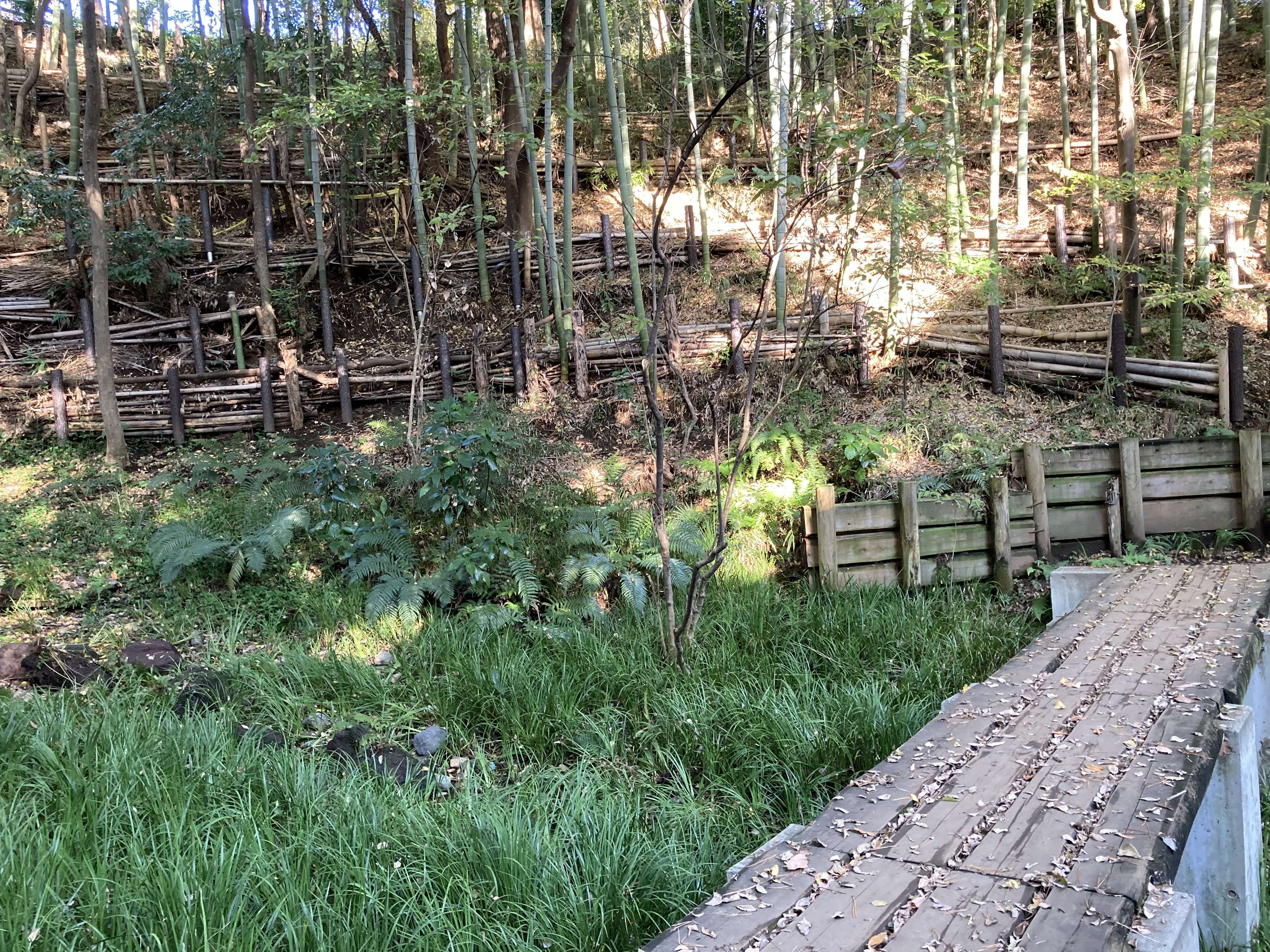 国分寺崖線の斜面に広がる樹林が緑地として保全されており、竹やクヌギ、コナラからなる樹林をはじめ、季節ごとの植物が群生しています。