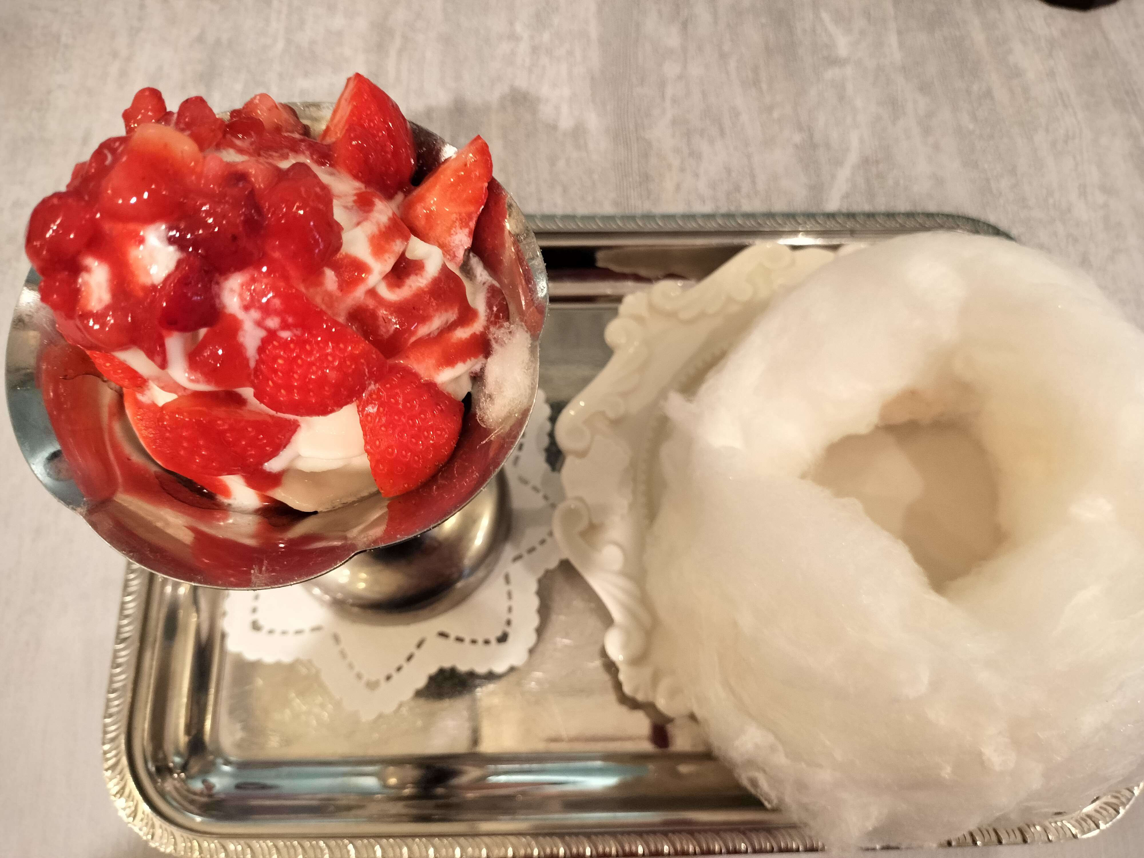 頼んだのは綿菓子があしらわれて、子どもが喜びそうな夢カワな「ストロベリーボンボン」
