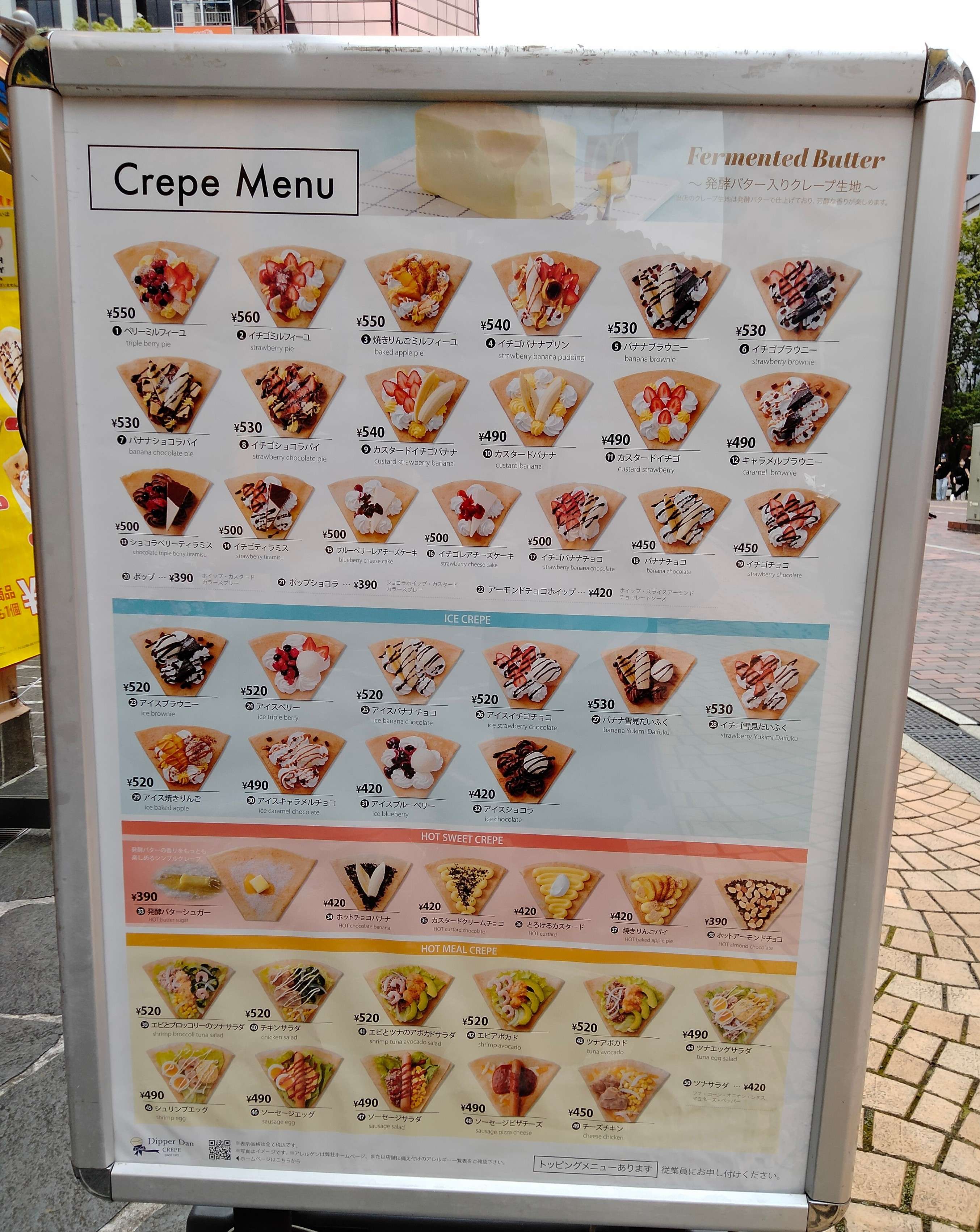 「デザートクレープ」「アイスクレープ」「ミールクレープ」と種類も豊富