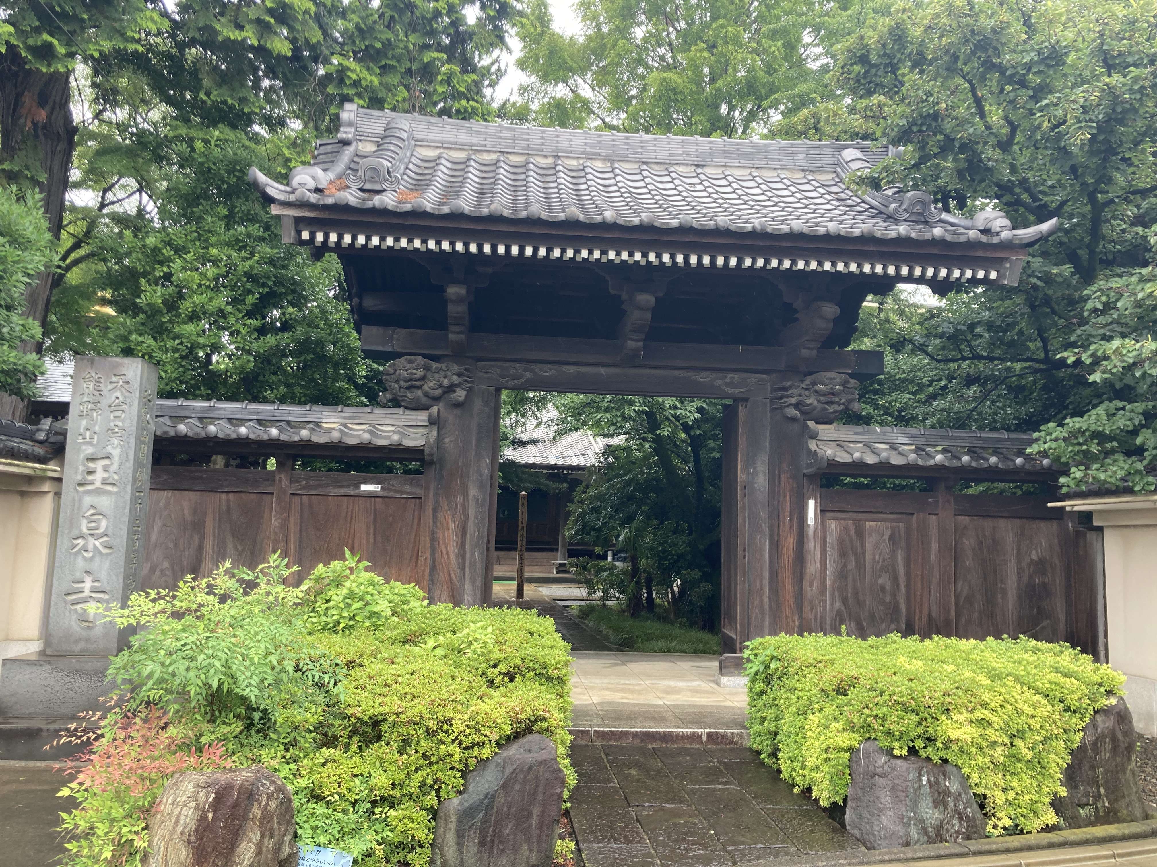 駅前の商店街を左に折れ、もう一つ左に折れると、玉泉寺の門が見えます。