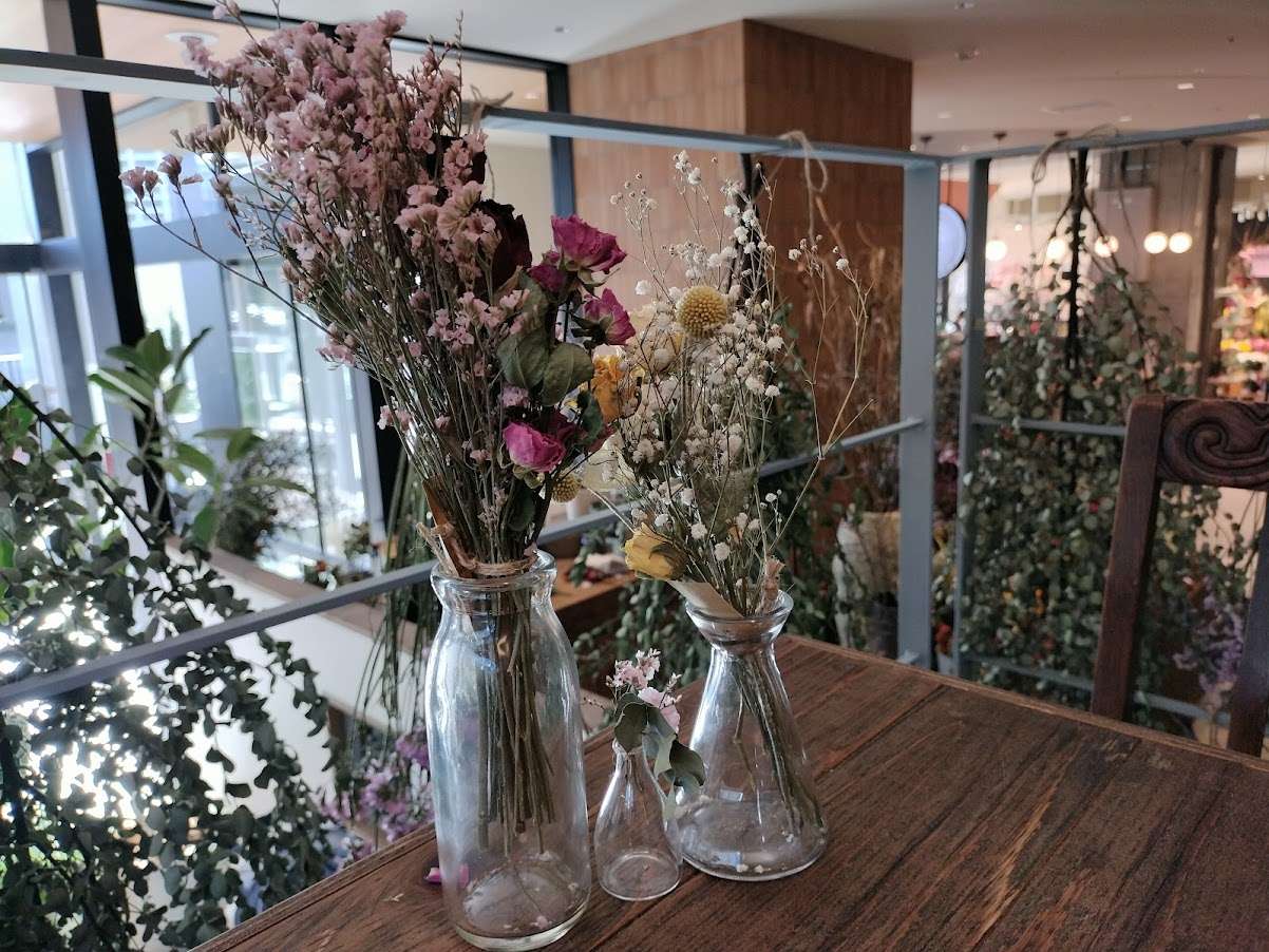 とってもオシャレな空間、店内はドライフラワーで彩られ、とても居心地の良いお店です。