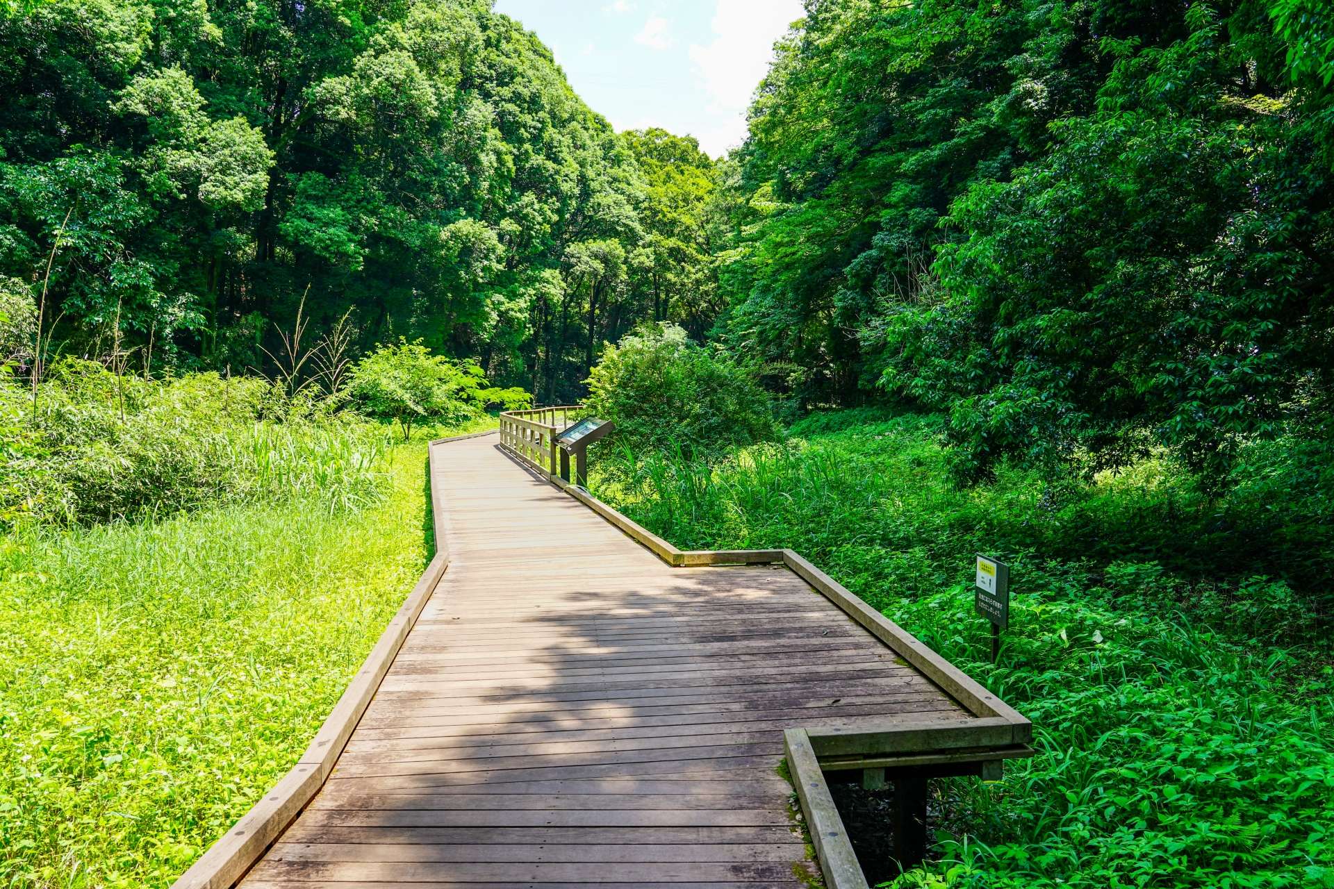 こちらは水辺に生息する植物や生き物を観察できるほか、ウッドデッキの散歩道で整備されているので気軽に散策をすることも。