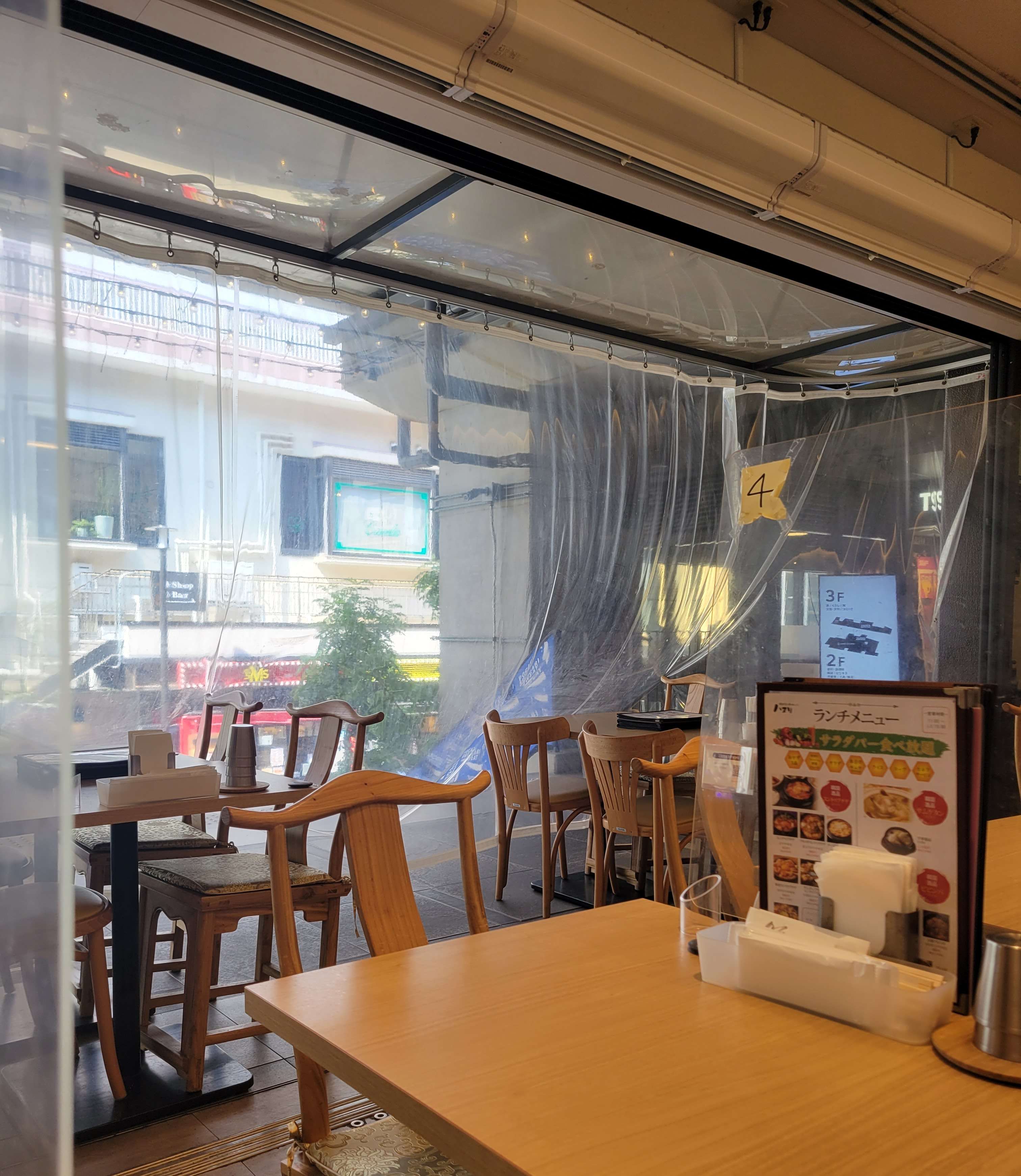 オープンカフェのような造りながら、透明ビニールで覆われているのでクーラーも効いた中で食べられます。