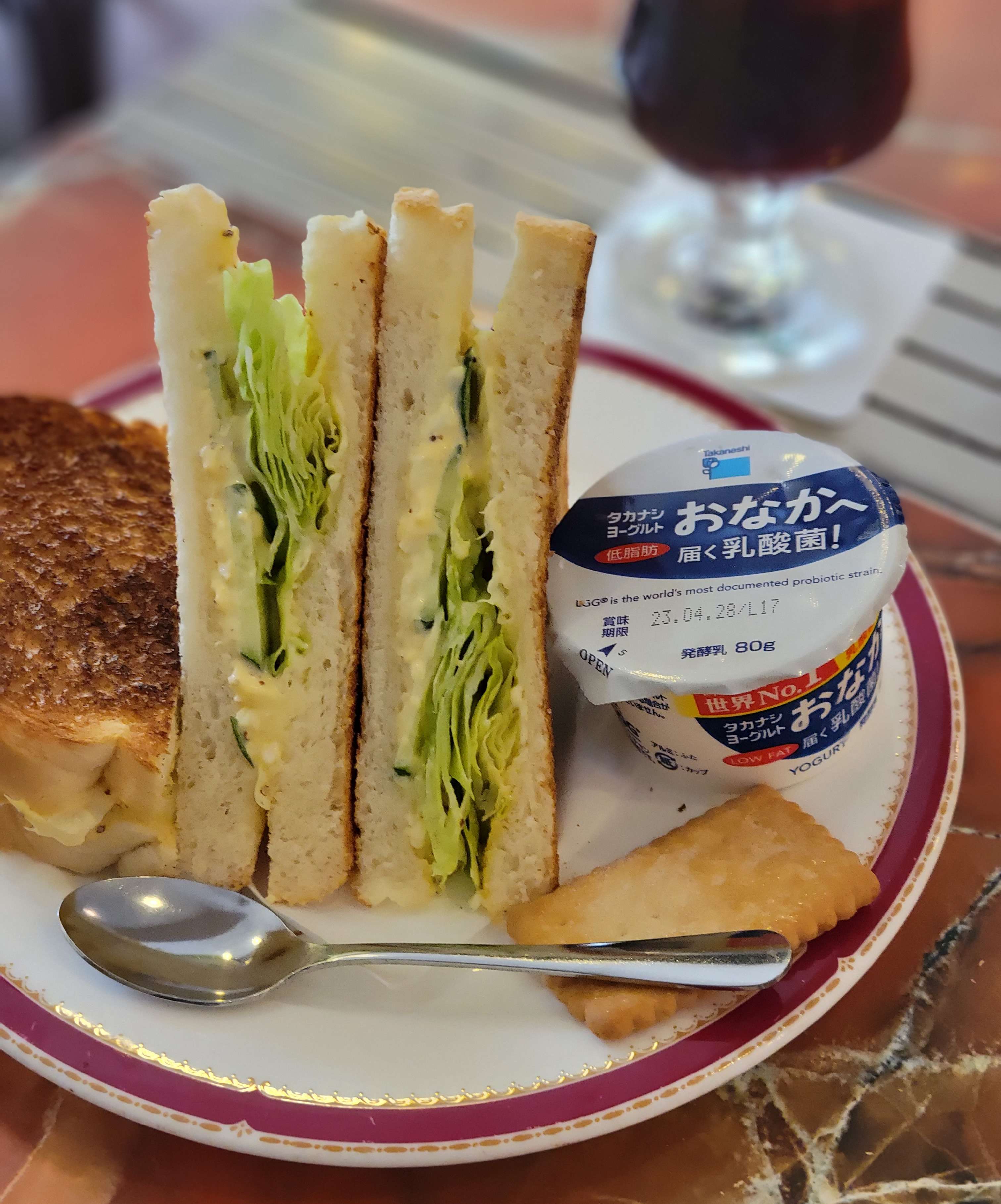 メインのサンドイッチの他、付いてくるものはゆでたまごかヨーグルトが選べます。