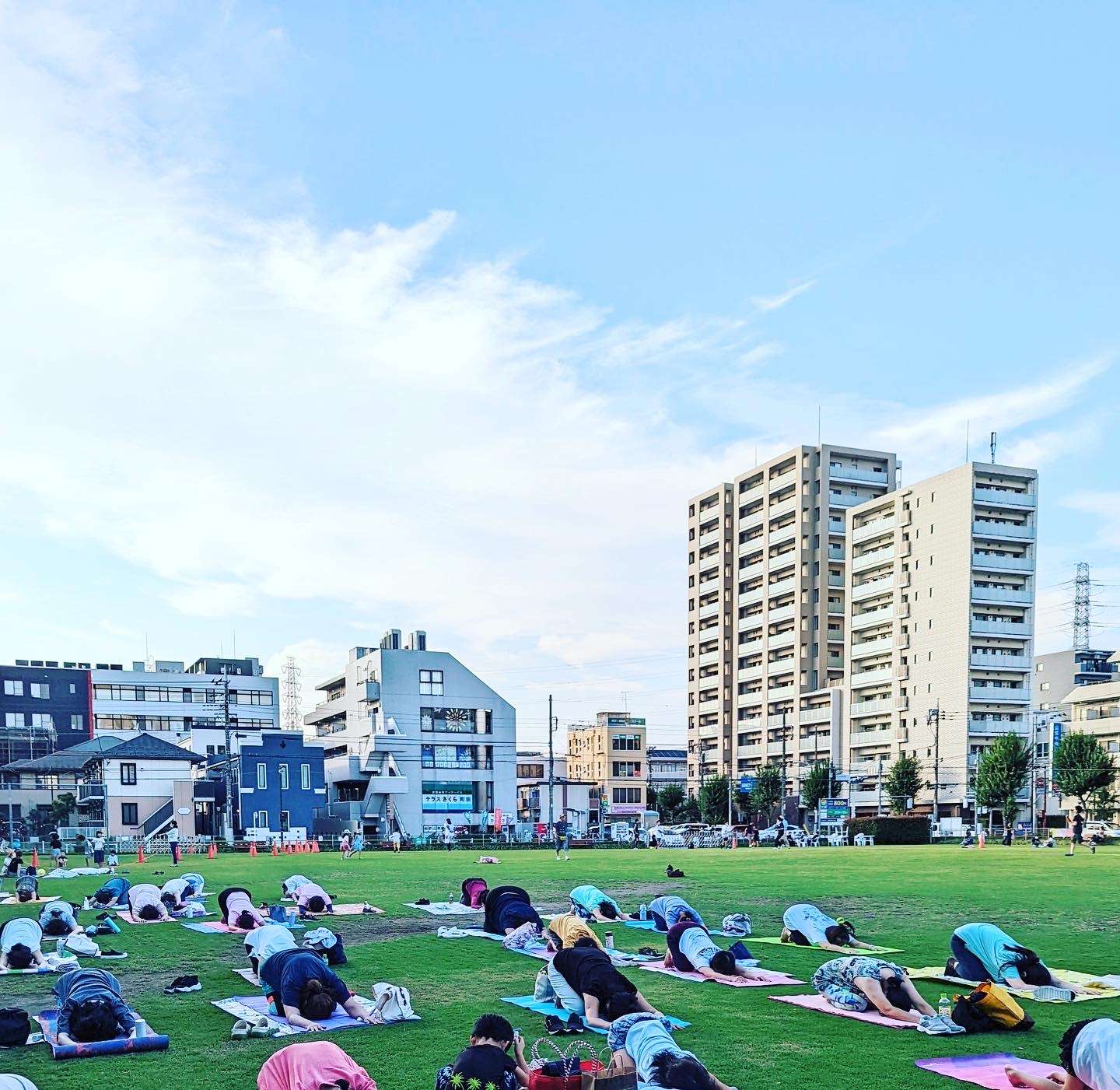 町田シバヒロヨガは、野津田公園で開催されるグリーンヨガフェスタ町田の告知を兼ねた無料のヨガです。
