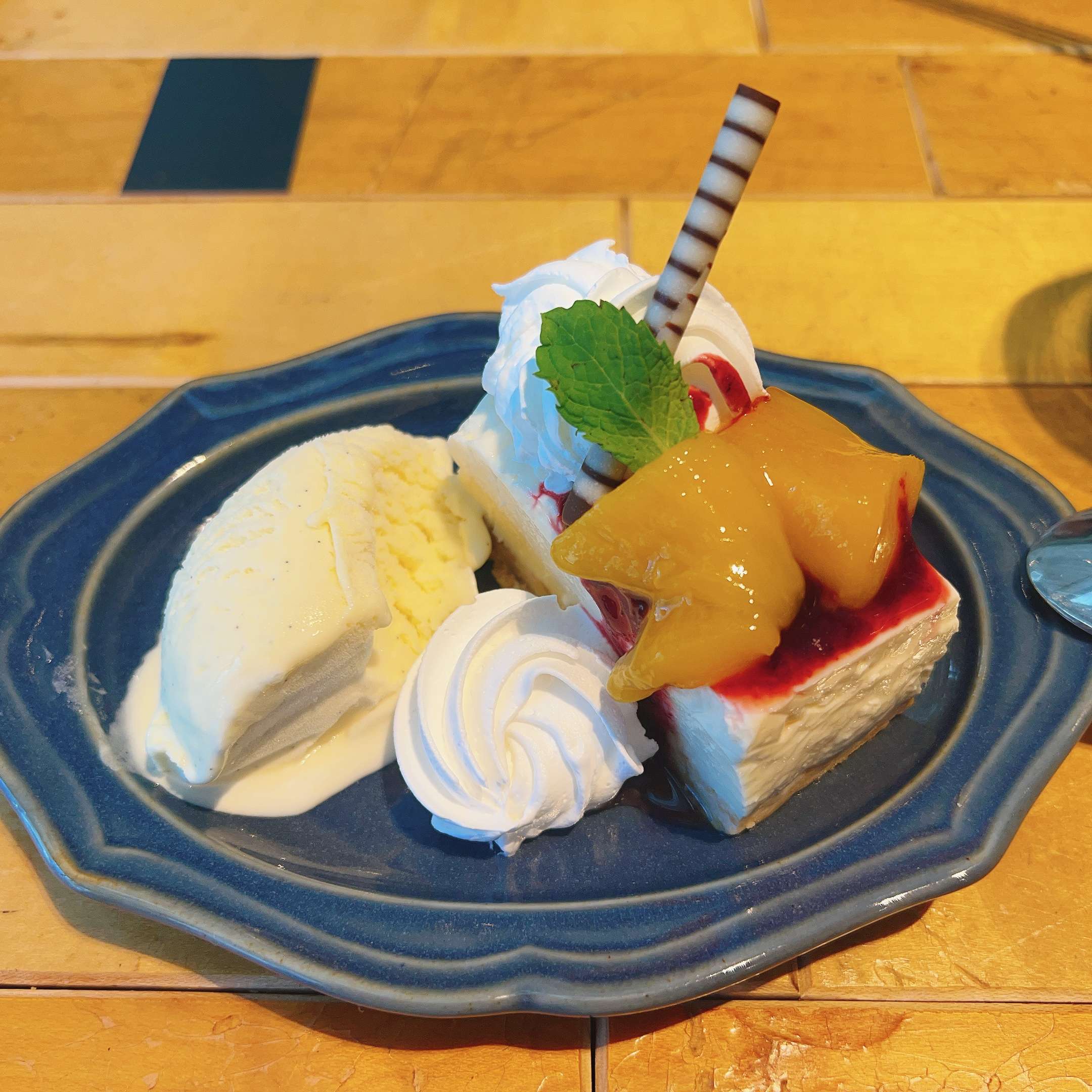 豆乳レアチーズケーキ〜ベリーソースはアイスとフルーツも添えてあり、しっかりとデザートを満喫出来ました。