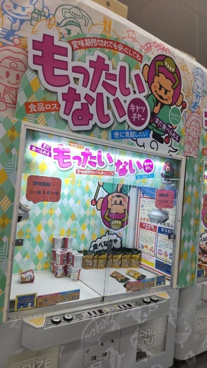 クレーンゲームもバリエーション豊かでお菓子やぬいぐるみの他、賞味期限切れや間近なものが取れるもったいないキャッチャーなどがあります。