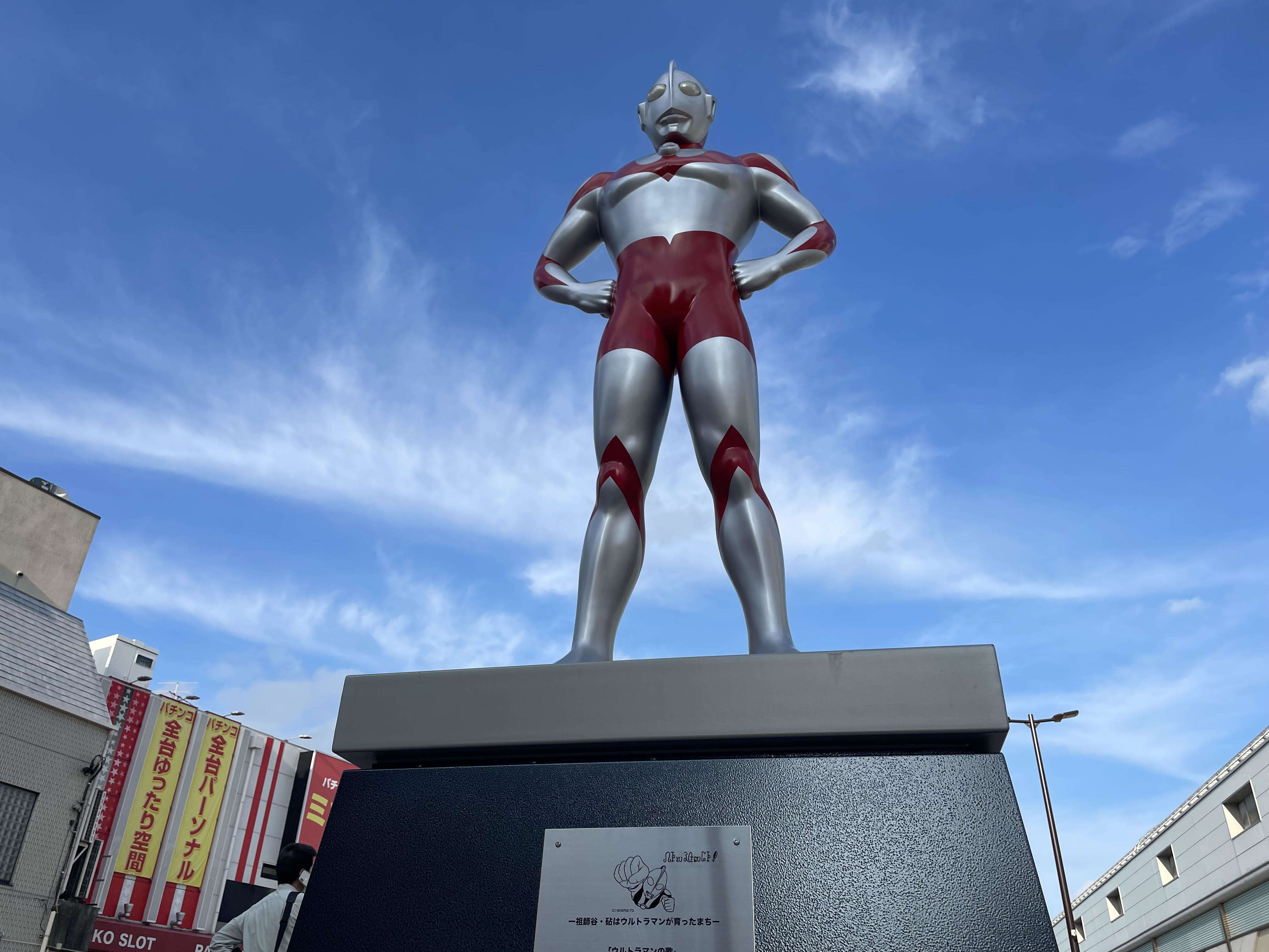 祖師ヶ谷大蔵駅前のシンボル「ウルトラマン」像、お店はこの反対側。