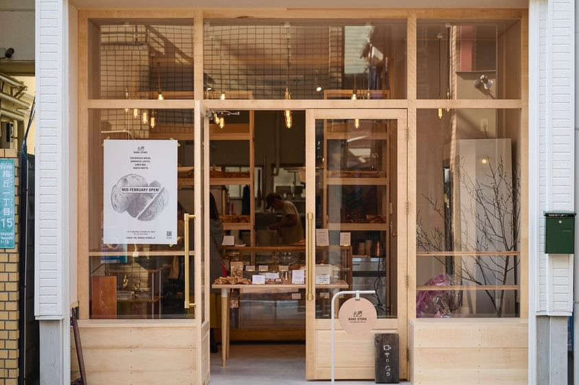 BAKE STORE は梅ヶ丘駅から徒歩3〜4分、シンプルでお洒落なクラフト工房のような外観です。