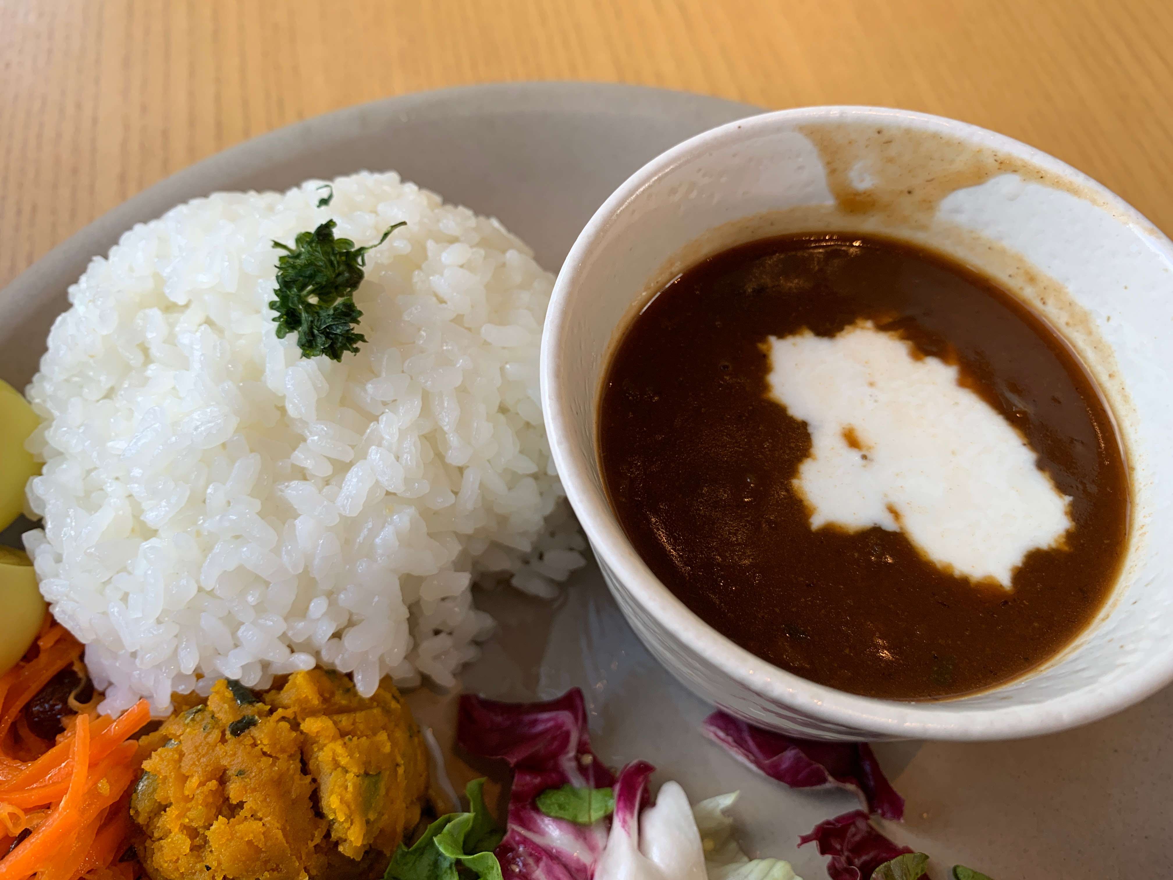 薬師カレーモーニング(ライス) 780円(税込 858円) は、彩り豊富なサラダ、ウズラのゆで卵がついていました。カレーは欧風な感じでとてもおいしかったです。