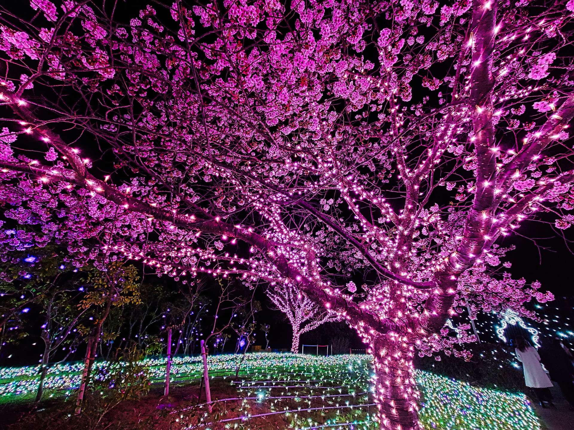 サムエル・コッキング苑のエントランス前に広がる亀ヶ岡広場会場では、ホウセキ広場&SAKURAイルミを同時開催。湘南の澄んだ夜空とまばゆい光の共演は、幻想的な世界を演出します。2月中旬頃には早咲きの桜が開花するため、全国的にも珍しい桜と光の共演も見逃せません。