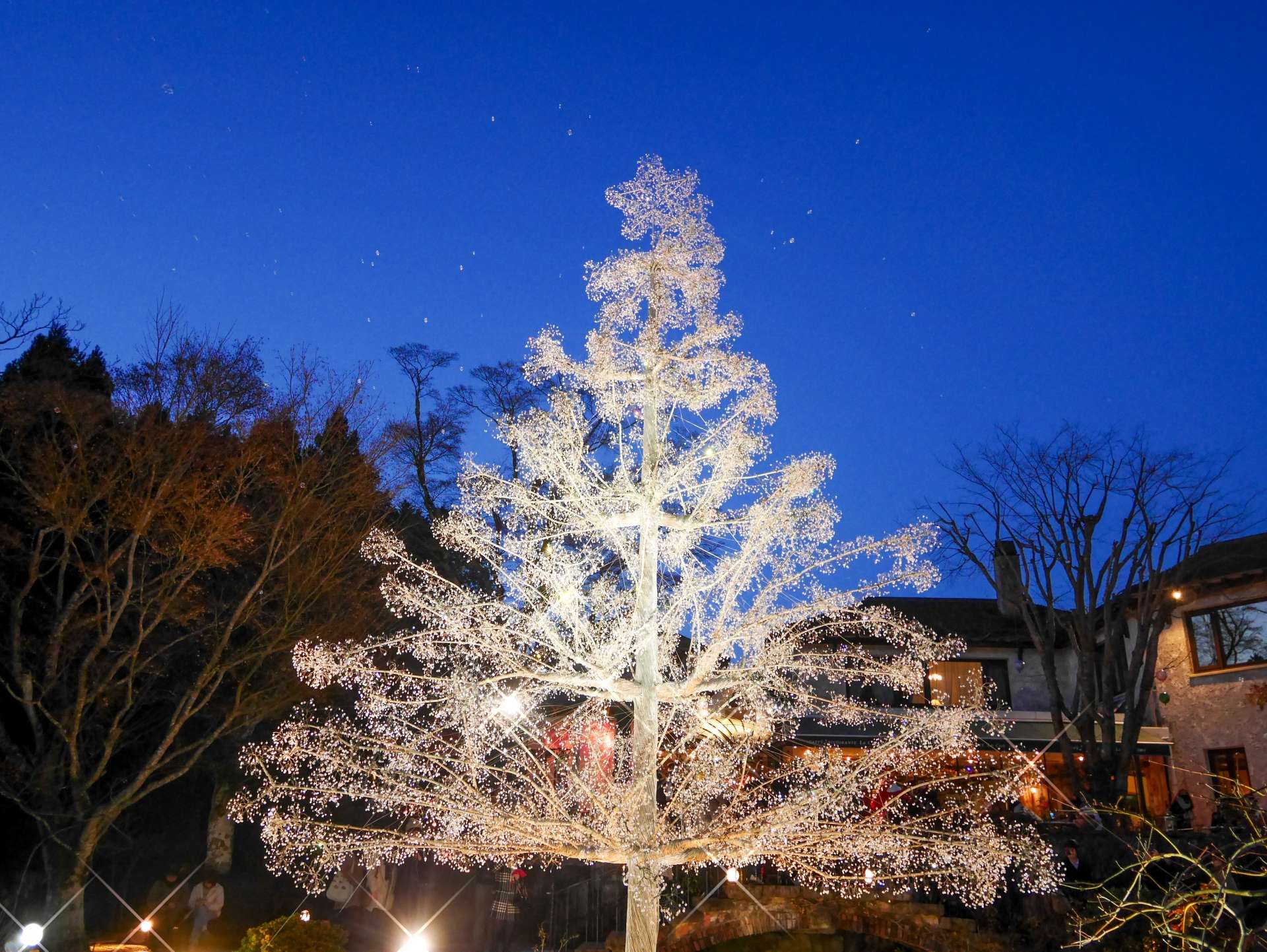 毎年クリスマス時期に開催されるクリスタル・イルミネーションも見どころの一つです。空気が冷たくなるクリスマスシーズンになると、庭園にクリスタル・ガラスがちりばめられたクリスマスツリーが登場します。ライトアップされ、きらきらと輝くクリスマスツリーはとても幻想的です。