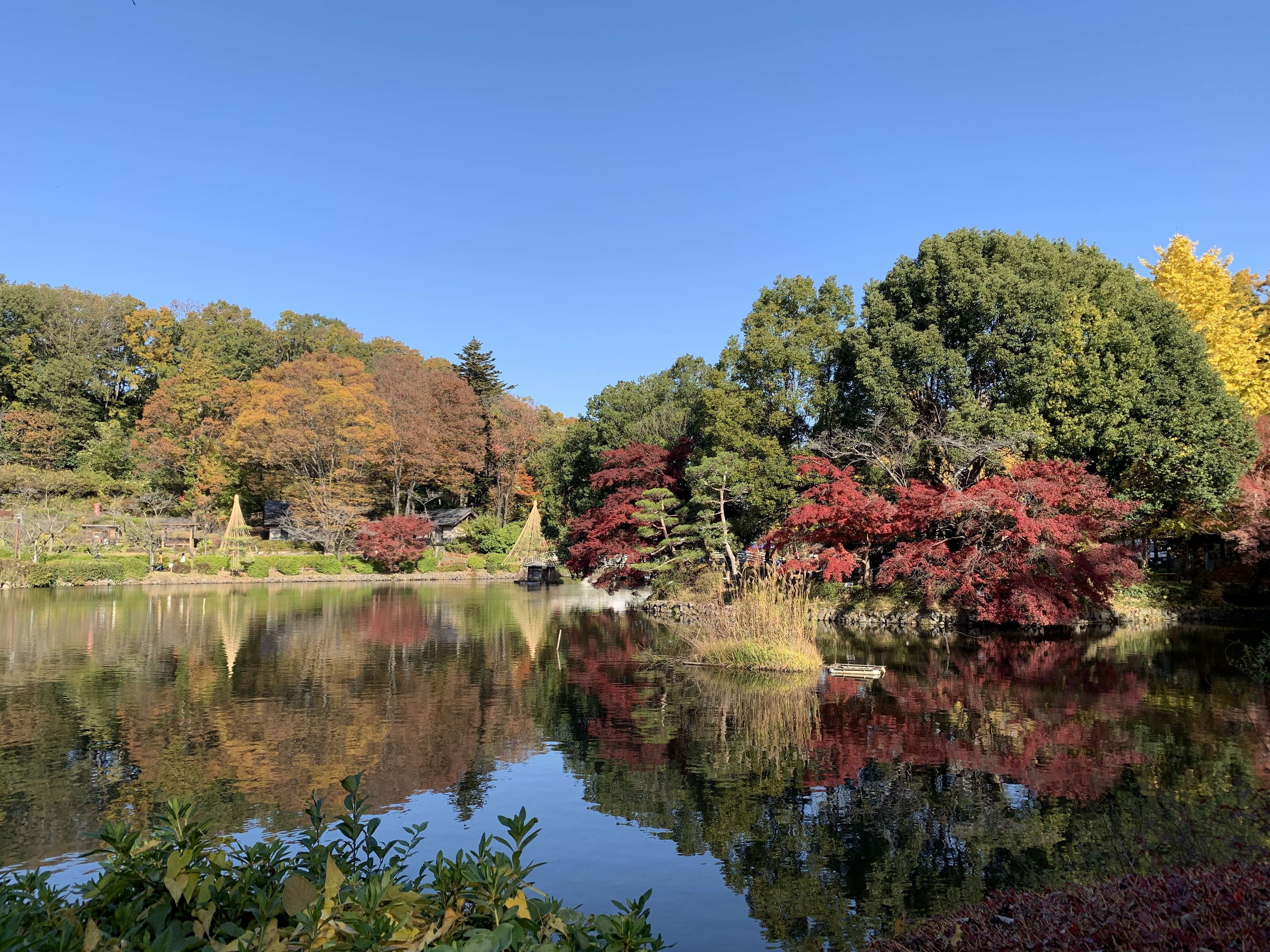 池に木々の紅葉が映り、美しさに見とれてしまいます。