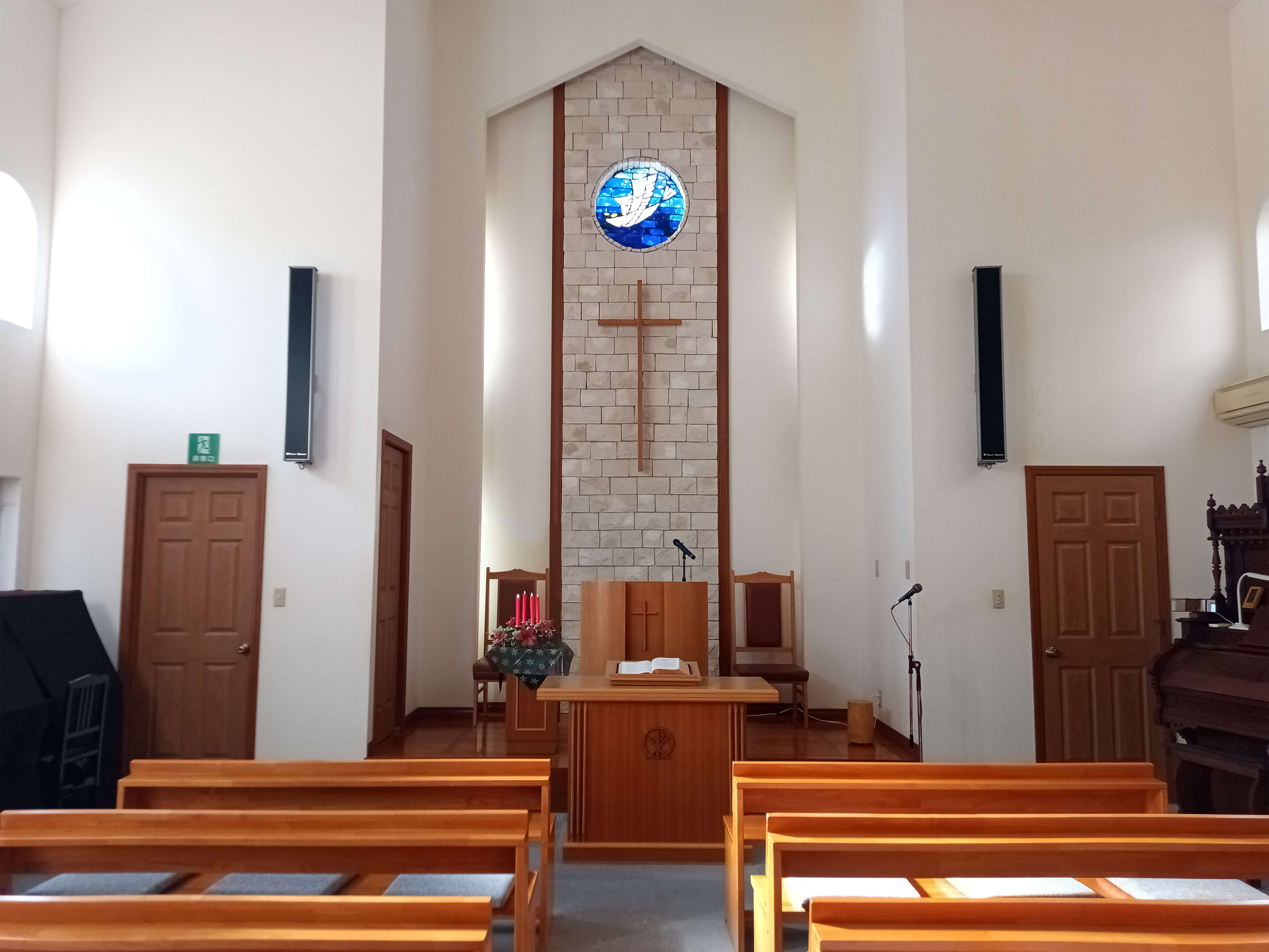 小さいながら清潔で静かな会堂。毎年秋にはクラシックコンサートがあり、音響の良さも評判です。