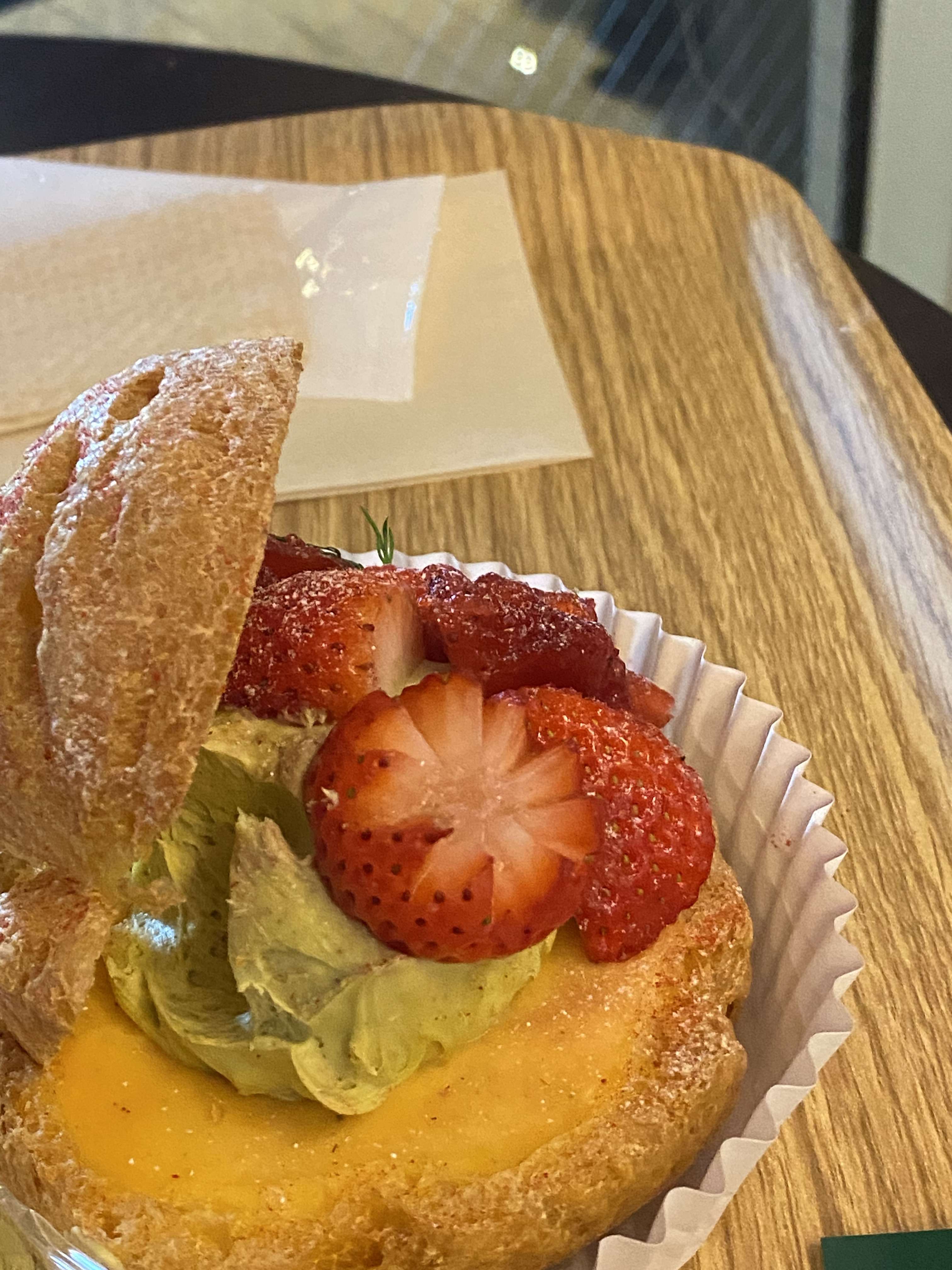 こちらのシュー皮はとにかく軽い食感のサクサク系で、メレンゲをのせて焼くことでさらに甘さと香ばしさを味わえます。