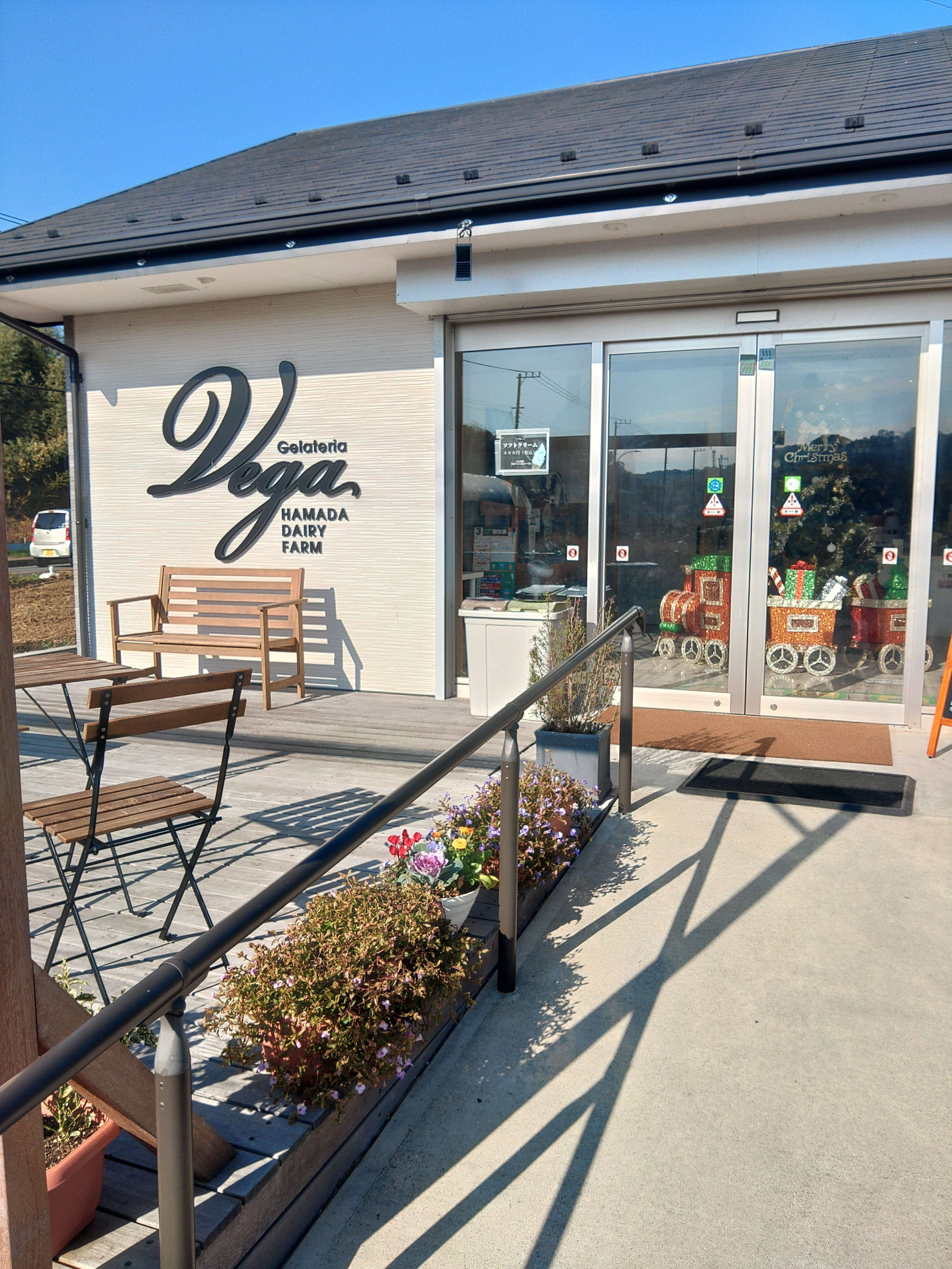 都会の喧騒を離れたような田園風景の中にある、お店には経営元の『有限会社 浜田牧場』の牛乳と地場産の農産物を使ったジェラートを製造・販売しています。