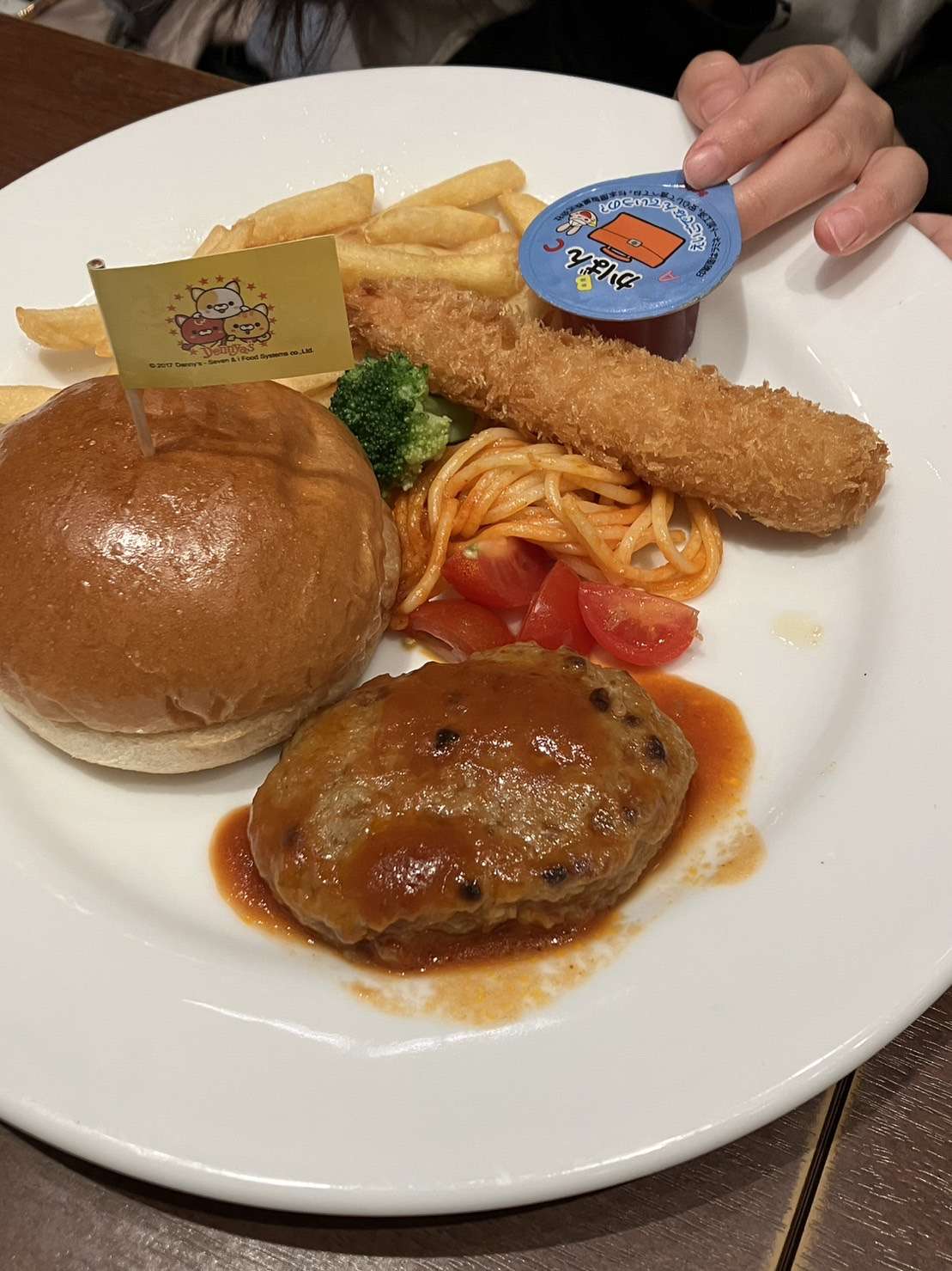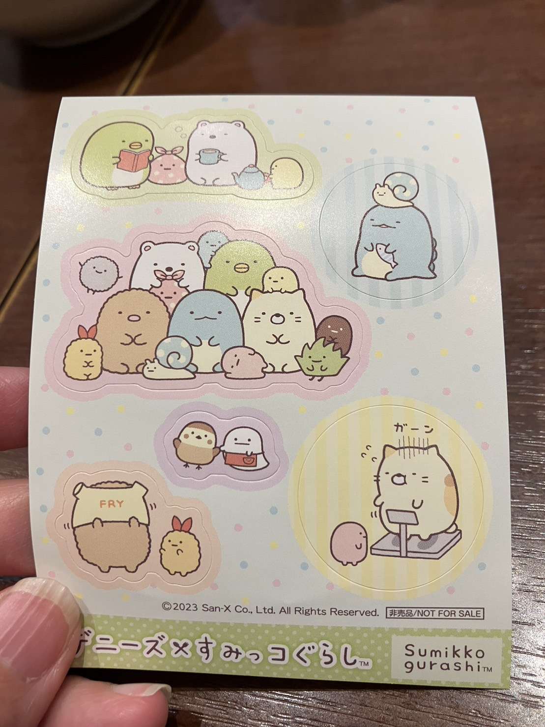 お子様メニューを頼むとすみっコぐらしのシールが無料でもらえました。