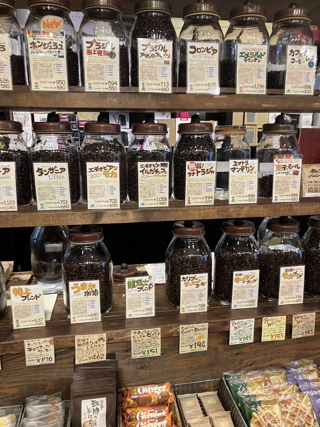 店内にはたくさんのコーヒー豆、丁寧なPOPにそれぞれのコーヒー豆の特徴が表記されているので初めて来店された方でも安心して自分にあったコーヒー豆を選ぶことができます。