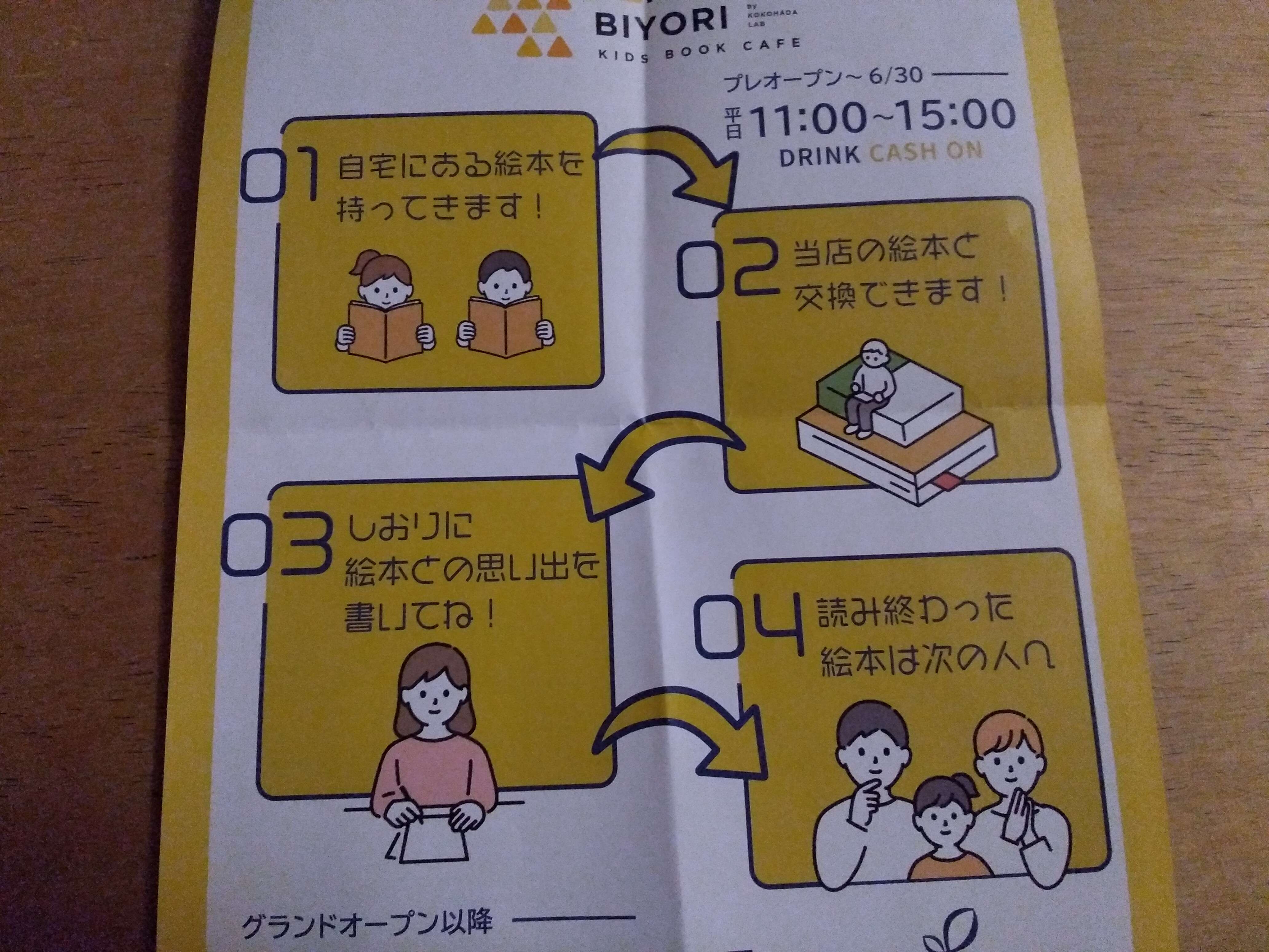 普通のカフェと思ったら、図書館カフェだそうで、家から1冊絵本をもってくると、そこにある絵本1冊と交換できるそうです。