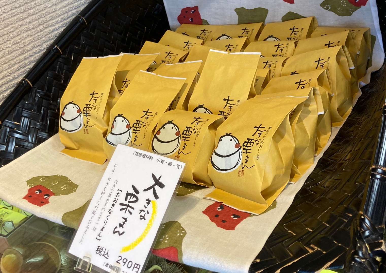 お店の方に人気商品を伺うと、定番人気商品のひとつは「大きな栗まん」とのこと。大きな栗が一粒まるごと入ったボリュームのあるお饅頭です!