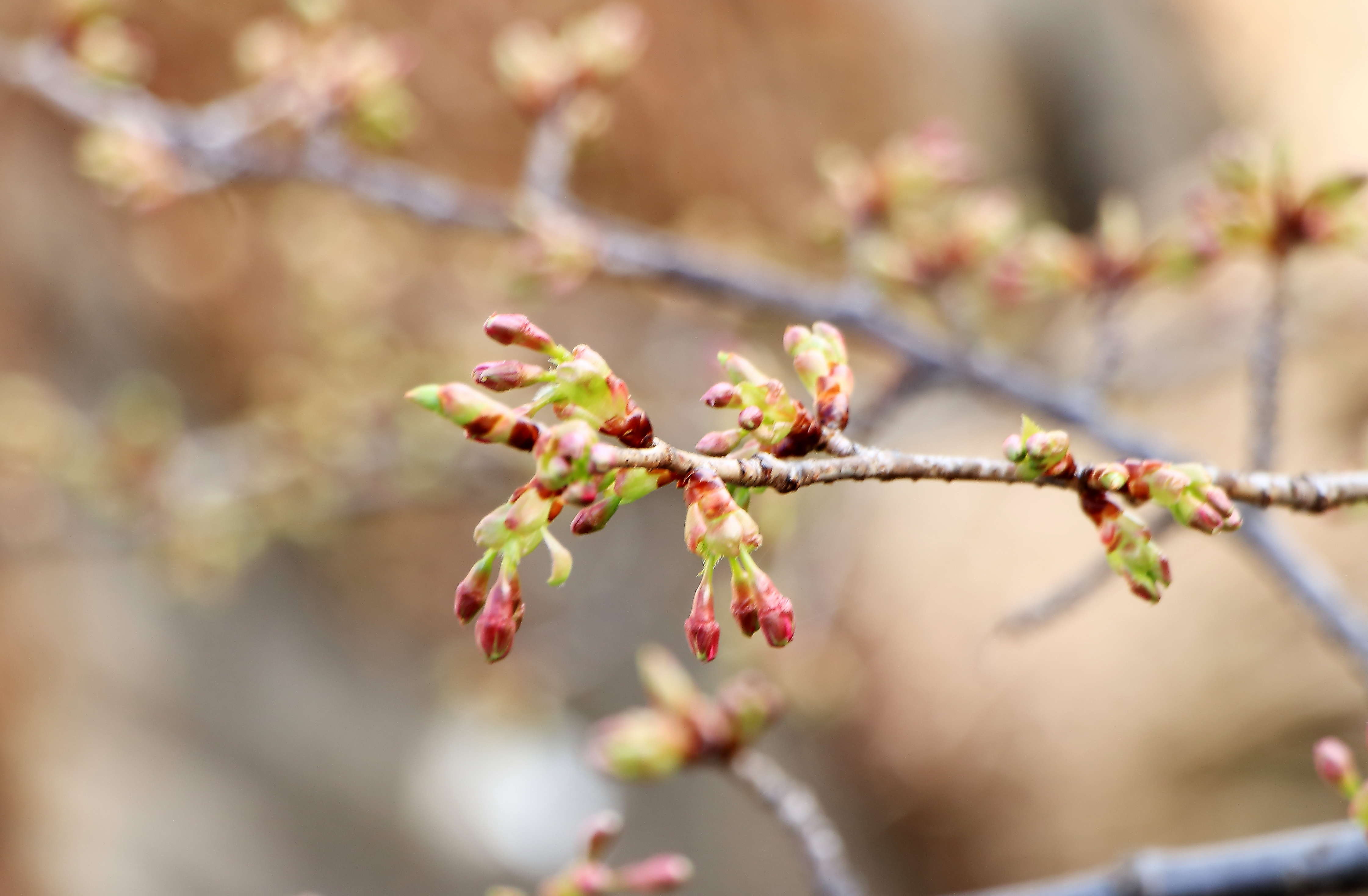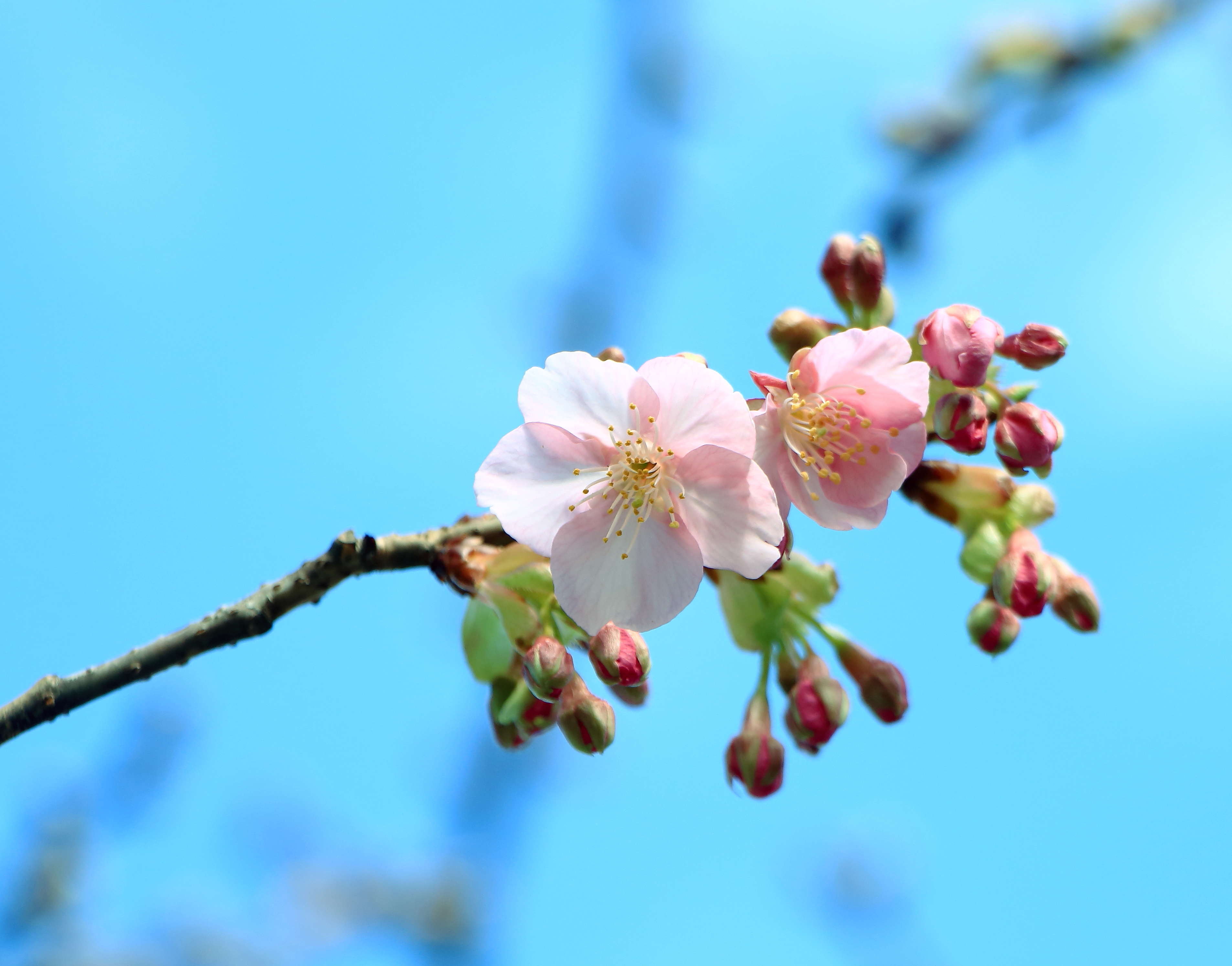 小田急線生田駅近くの五反田川沿い(川崎市多摩区生田)で、河津桜が咲き始めました。まだほんの数えるほどですが、ピンク色の可憐な花を見つけました。これからどんどん咲いてくると思います。