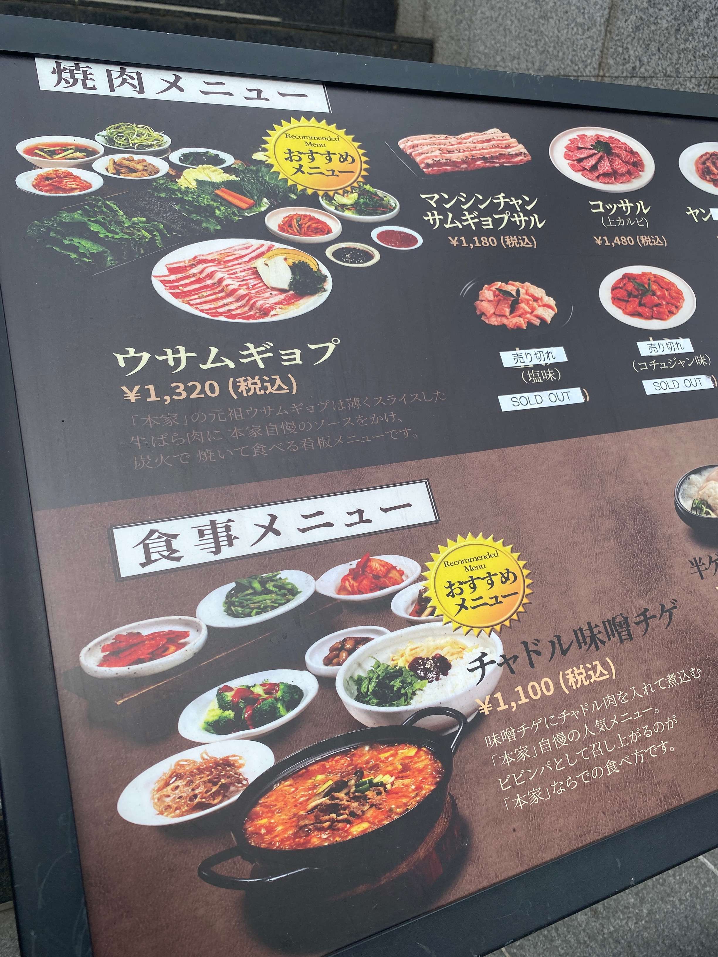 安心安定の料理研究家ペク・ジョンウォン先生のお店。広くて清潔なお店で落ち着く雰囲気です。日本ではめずらしい牛ばらの焼肉ウサムギョプが看板メニュー。みんな楽しそうに焼いたお肉を葉っぱに巻いて頬張っています。
