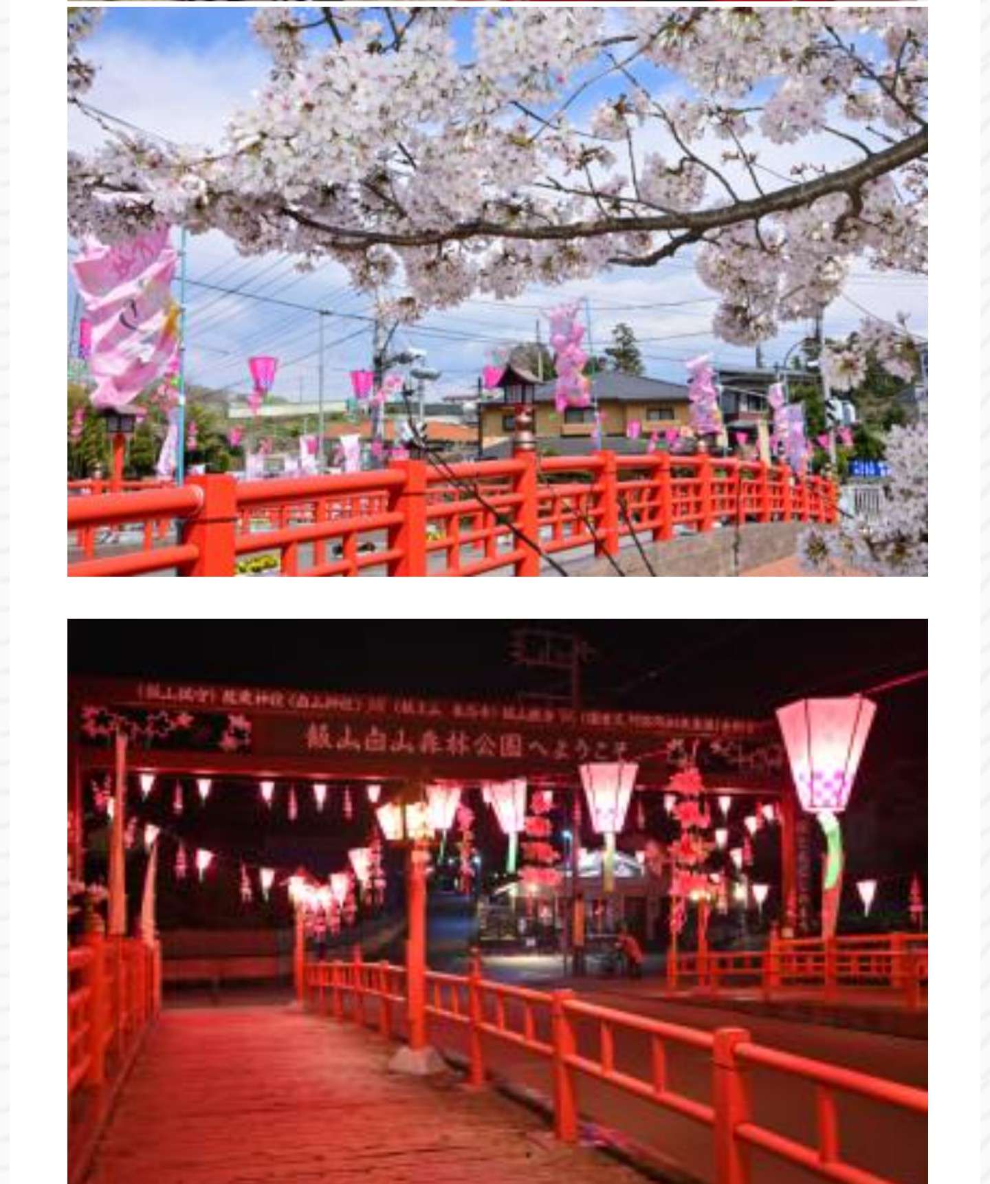 庫裡(くり)橋から飯山白山森林公園までの飯山観音参道には 満開の桜が咲きます。