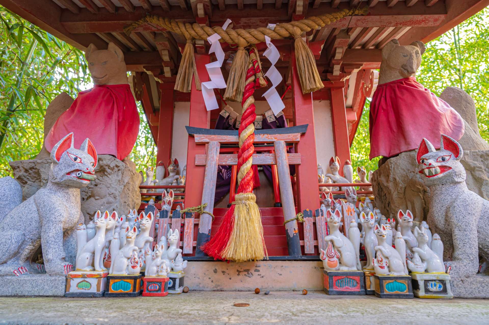 ここで祀っている神様は「稲荷大神」と呼ばれており、宇迦之御魂大神(うかのみたまのおおかみ)、佐田彦大神(さたひこのおおかみ)、大宮能売大神(おおみやのめのおおかみ)、四大神(しのおおかみ)といった神様が今も鵠沼の地を見守っています。