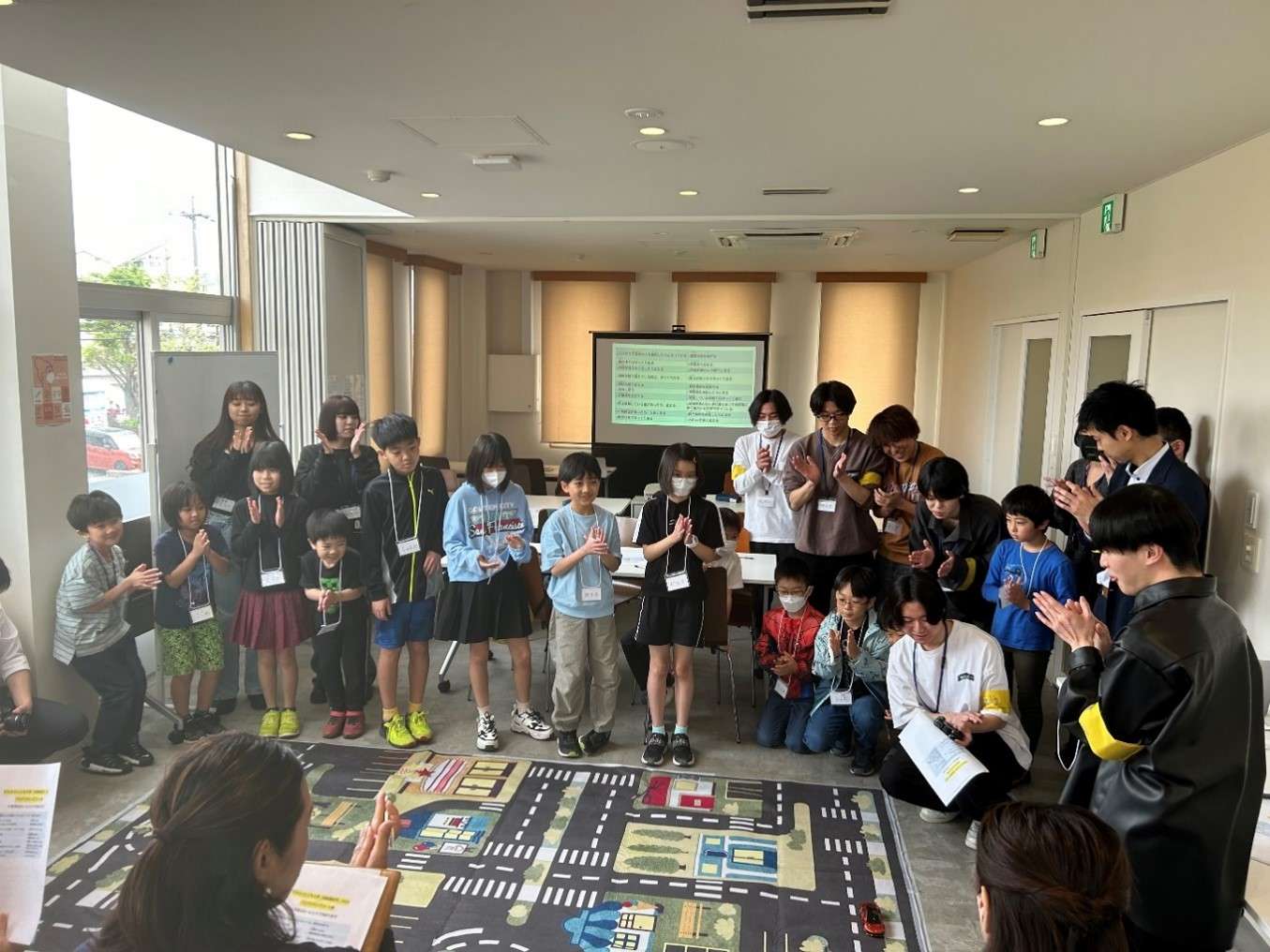大学生の説明の後に、子供たちがグループディスカッションを通して、自動運転の運転プログラムを決めて、ラジコンカーを走らせるという実証実験を行いました。実験が成功し、ラジコンカーが無事にゴールまでたどり着いた際には、見学していた親御さんも含めて大いに盛り上がりました。実験の際にも、大学生が小学生と同じ視点に立ち、小学生と同じく実験の成功を喜び、失敗を悔しがり、雰囲気を盛り上げようとしてくれたからこそ、拍手喝采の場が生まれたと思います。講座終了後には、親御さんも「世の中で知られていない自動運転車に関するニュースを知れて、勉強になった」とおっしゃっていました。自動運転車が普及した未来で、自動運転車が巻き起こす事故や問題とその解決方法を知る貴重な機会をいただいたと感じました。