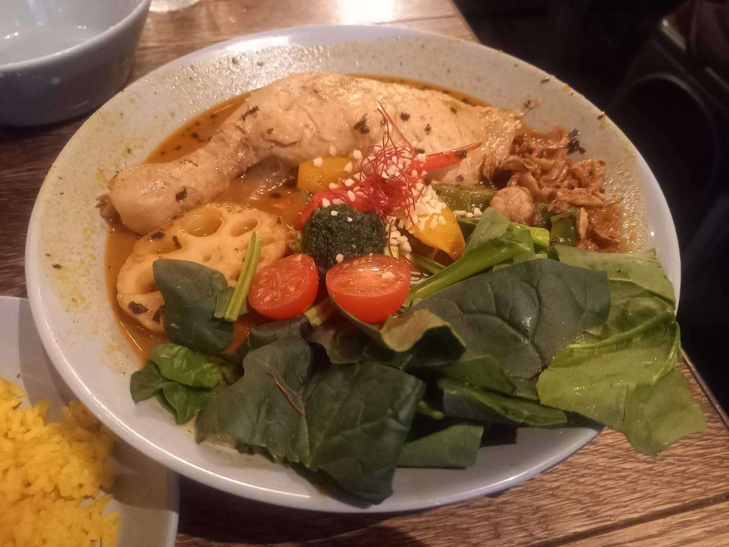 カレー激戦区の下北沢。どのお店もおいしいのですが、たっぷり野菜とジューシーなお肉が最高な、無添加のスープカレー「無添加薬膳スープカレー COSMOS 」がお薦めです。