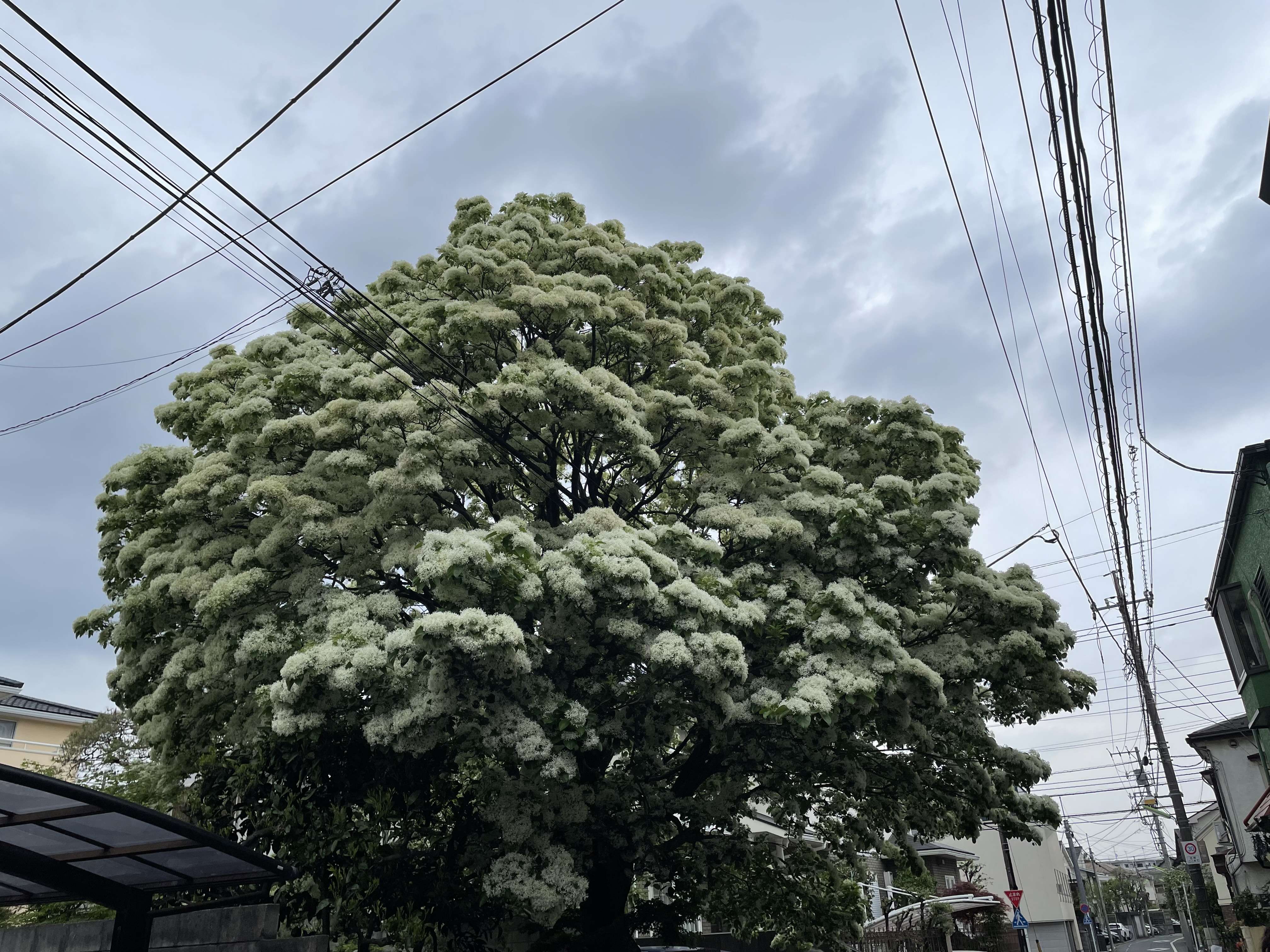 経堂と豪徳寺の中間地点、閑静な住宅街に突如見えてきたのが、満開のなんじゃもんじゃの木。多くの人が足を止めて見上げていました。名木百選&保存樹木に認定されていて、ほんとうに立派でした。4月中旬が見ごろだったので、来年の春も楽しみにしていたいと思います。