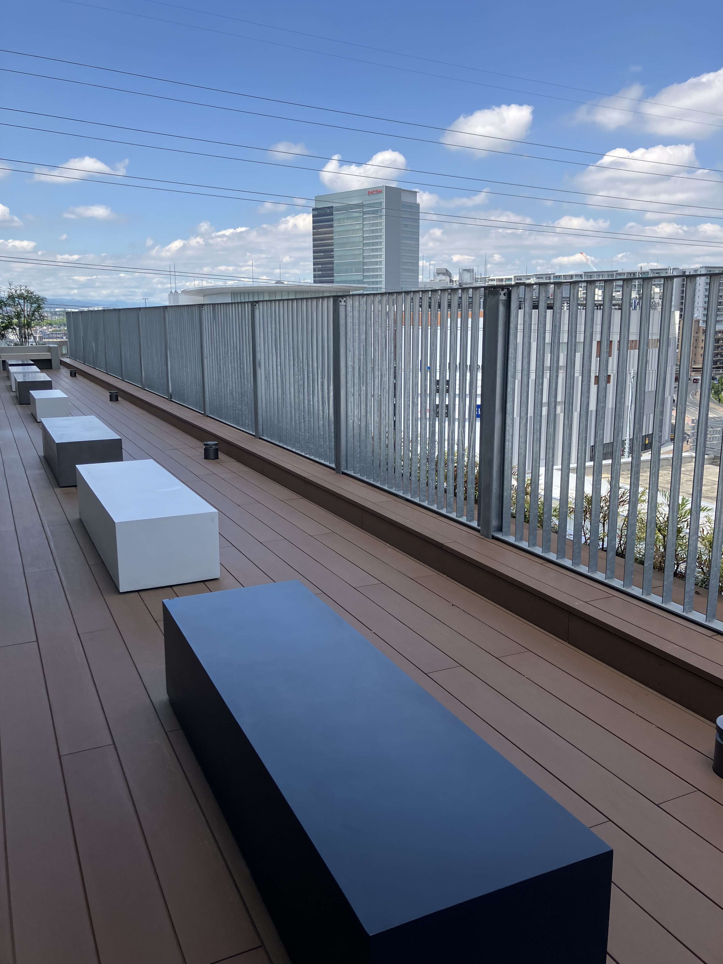 ビナガーデンズパーチの6階にあるバルコニーはとっても見晴らしがよく、気分転換にぴったりです!クリニックが集まった6階に来た時は絶対に寄りたいお気に入りの場所です。電車が上から眺められたり、晴れた日には山が綺麗に見渡せます。