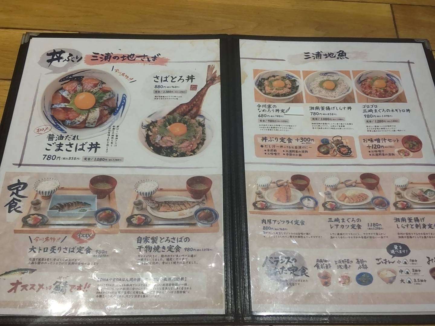 こちらがメニュー表。おすすめはもちろん、生さばを使用した醤油だれごまさば丼です!