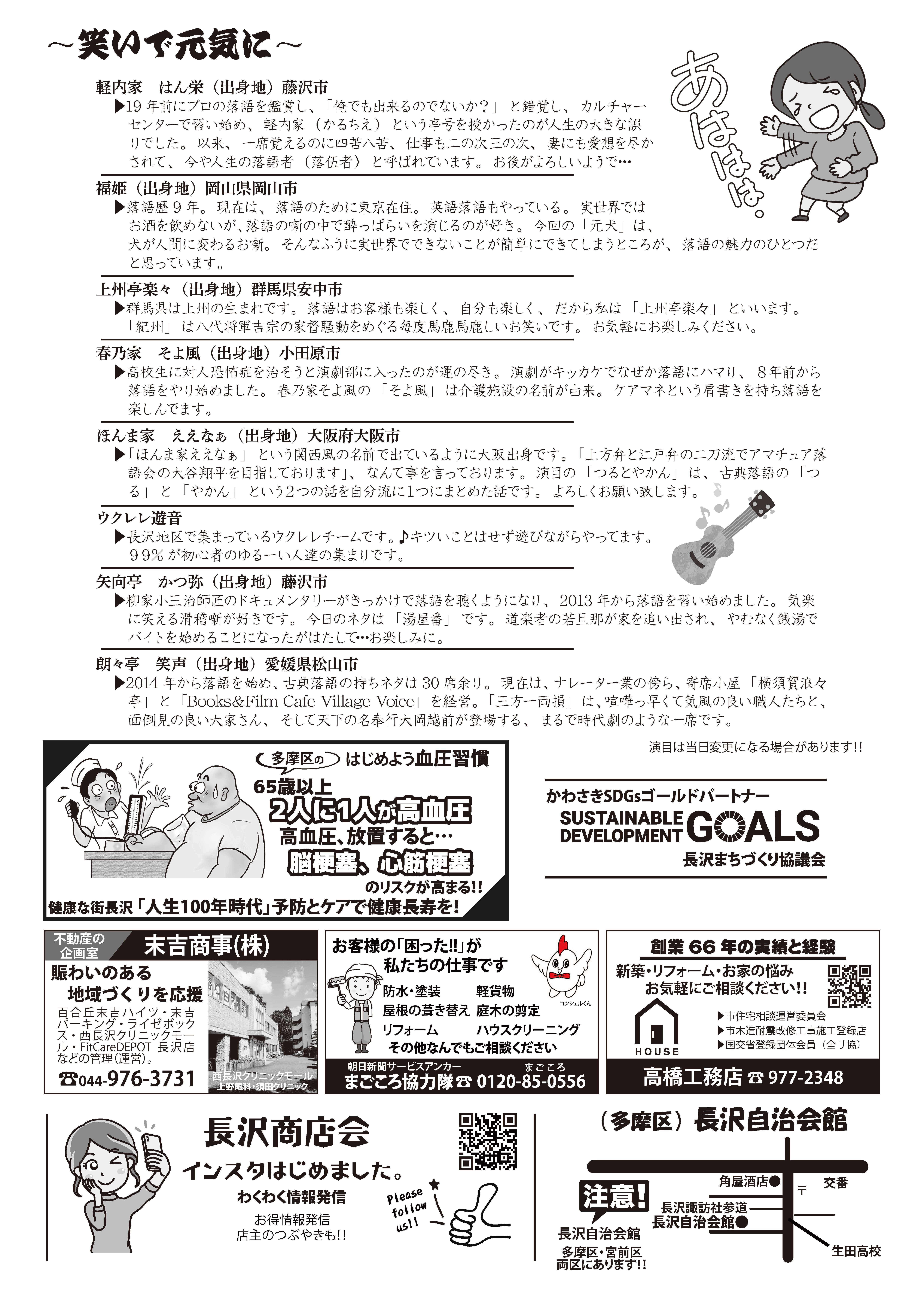 この寄席は、長沢の街に笑いと元気を届けたいという気持ちから、まちづくり活動を展開している「長沢まちづくり協議会」が主催。