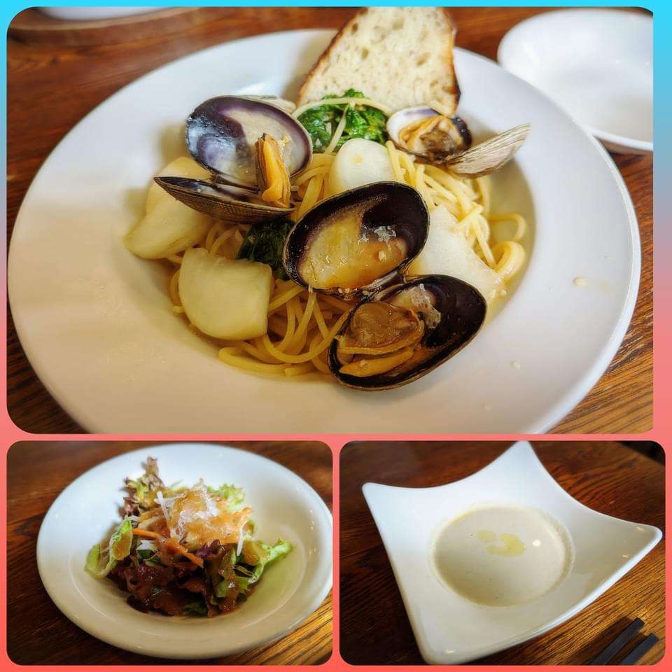 ランチメニューのアサリとカブのパスタとラザニアをオーダー!