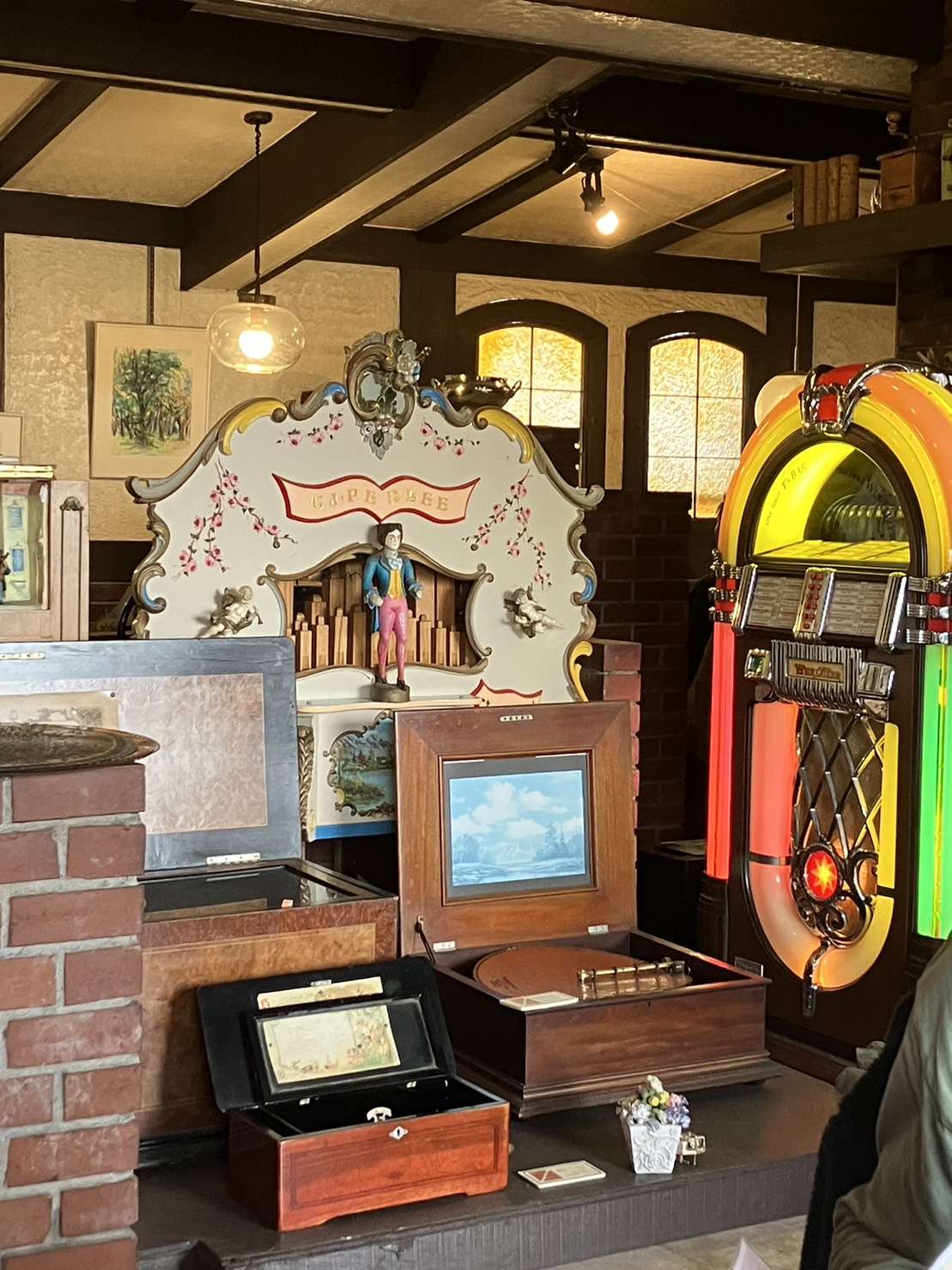 またオーナーが集めた大小、新旧様々なオルゴールコレクションが店内にあります。