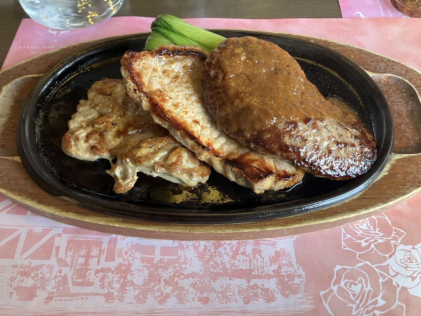 若鳥のグリル、米沢豚のソテー、ハンバーグがのっているんですがこれがおいしくてペロリ・・
