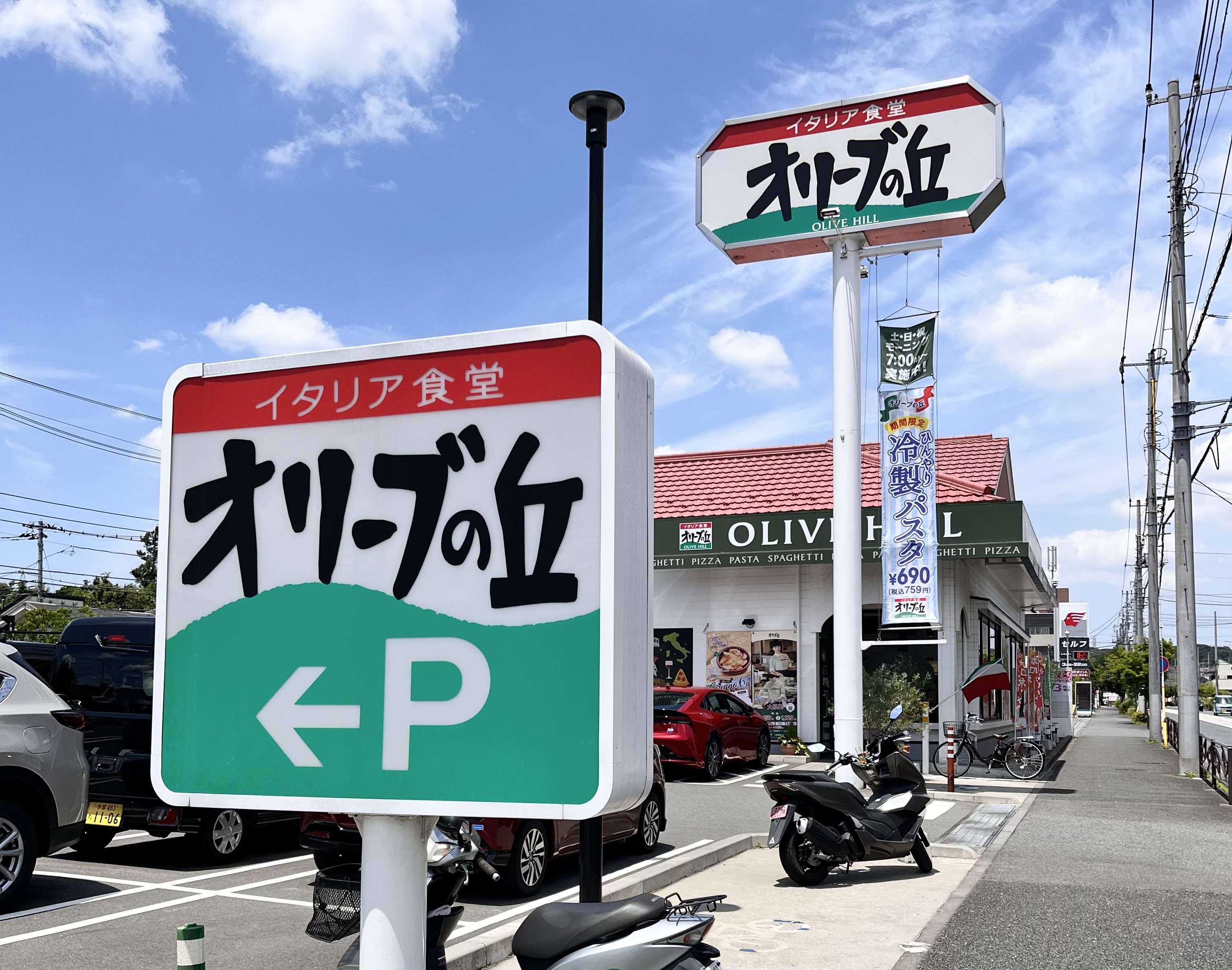 小田急多摩線「五月台駅」から徒歩約10分の場所にある手頃な価格が嬉しいイタリアンレストランチェーン「オリーブの丘」の川崎片平店。