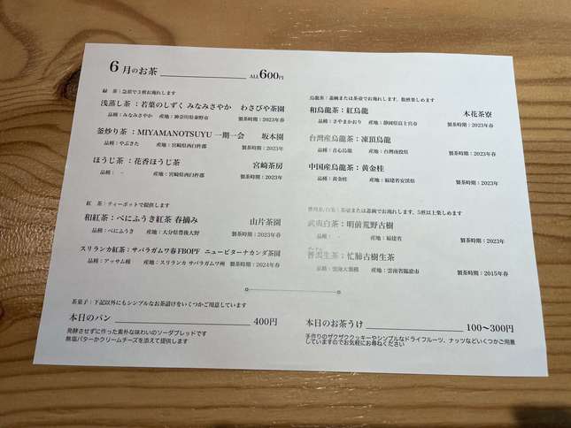 他にもたくさんの種類のお茶がありましたが、私たちはこちらから選びました♪