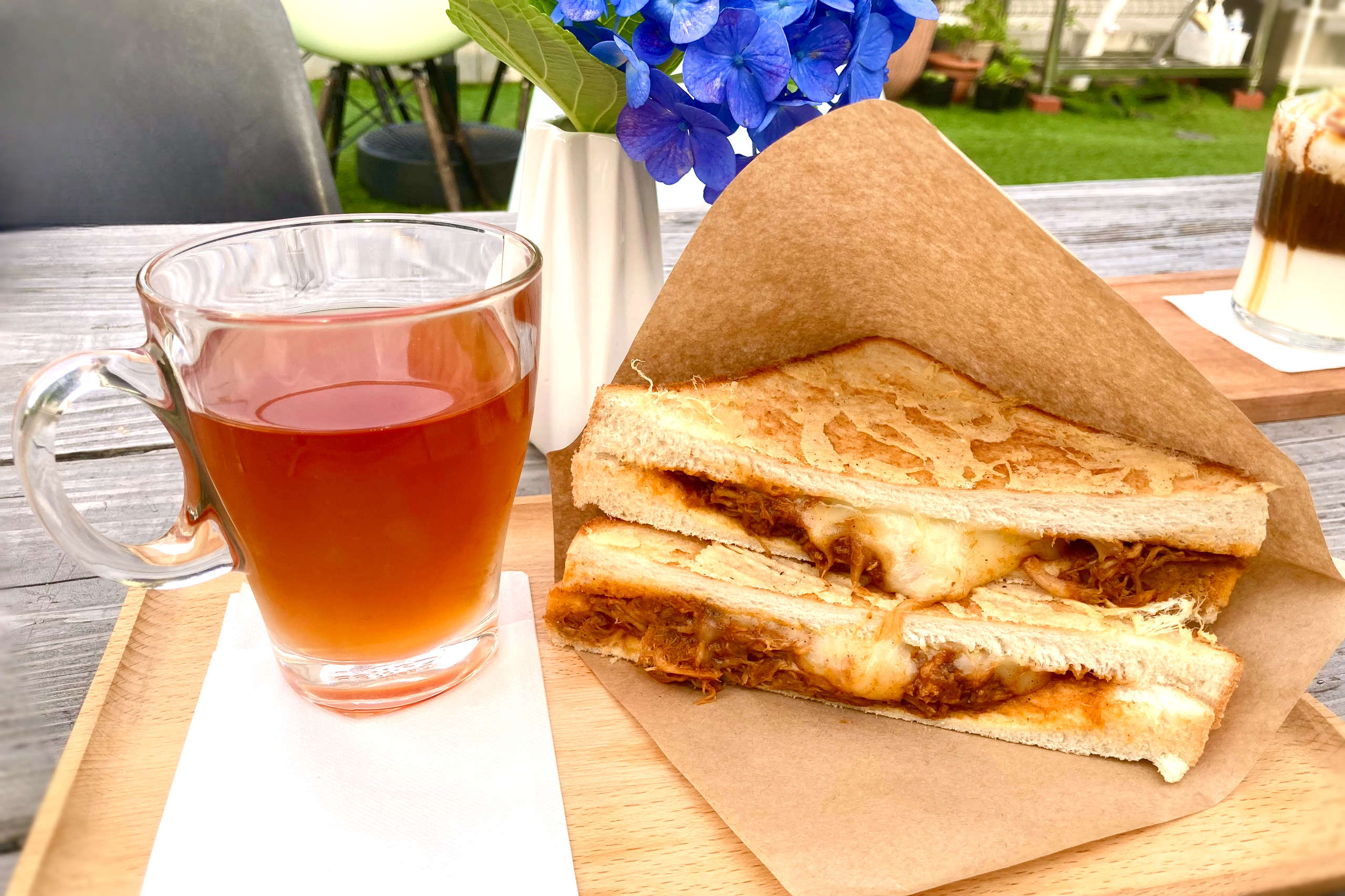 看板メニューはオーナーさん厳選の数種類のチーズをふんだんに使ったこだわりのチーズメルトサンド。