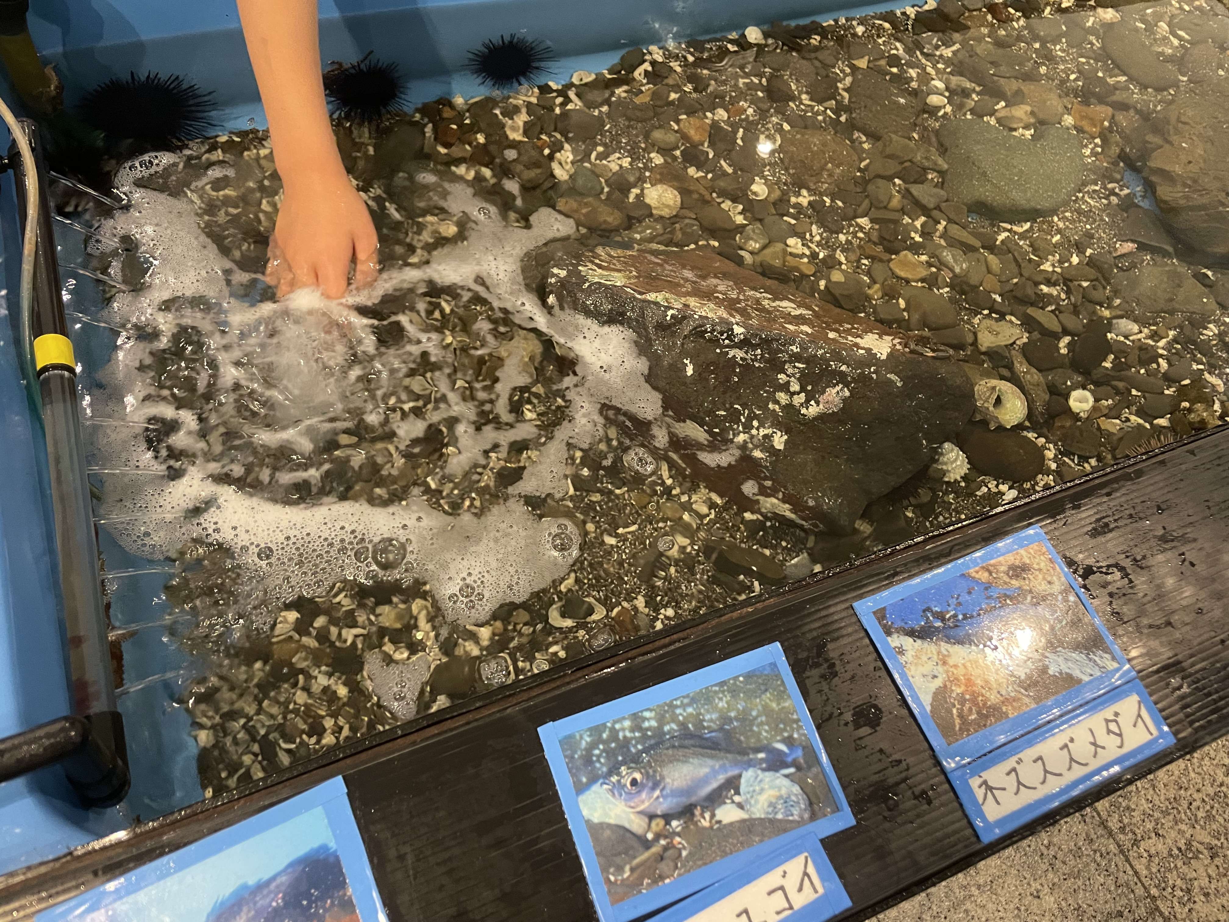 こちらの水槽内の生き物には触れることができます。