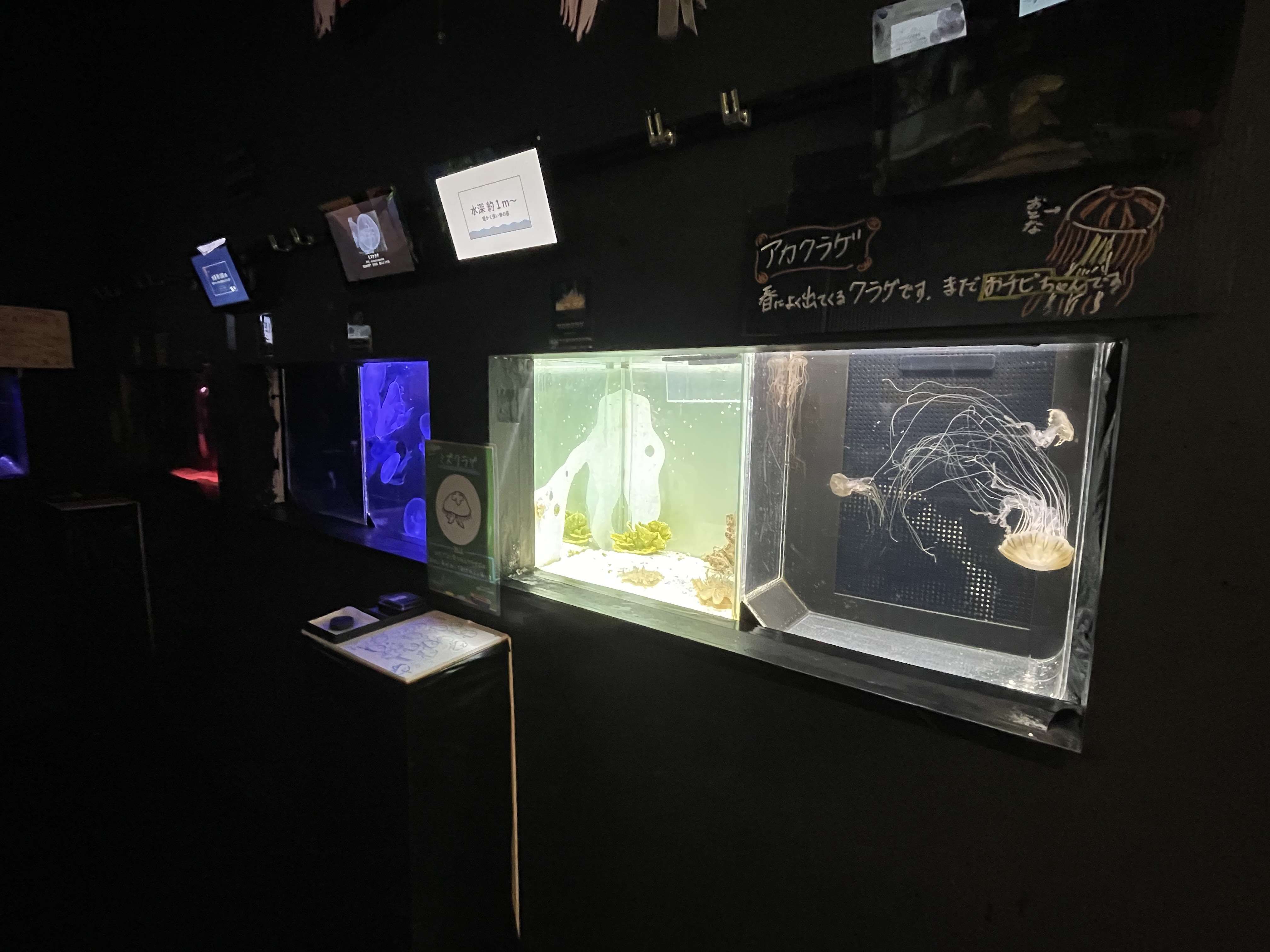 ミニ水族館とはいっても、馴染みのあるお魚から珍しいものまでたくさんの種類がいて、なかなかの見応え。