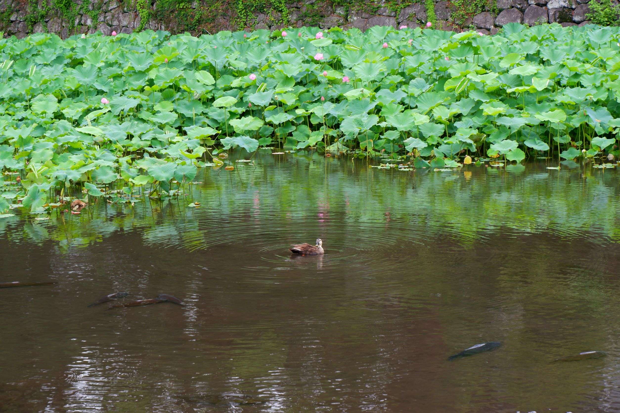 7月中旬から8月中旬までの間は小田原城址公園の南曲輪南堀でハスの花が見られますよ。